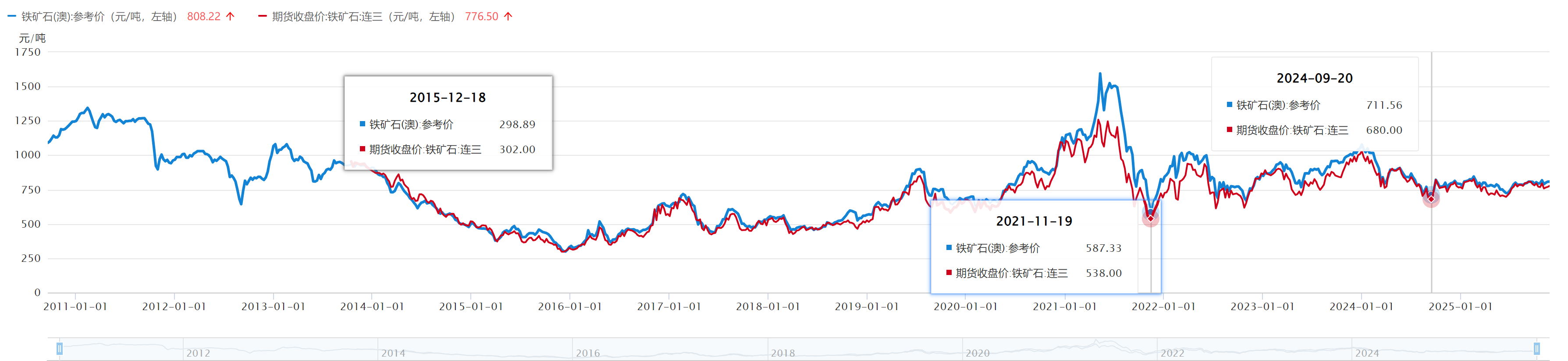 所以铁矿石的低点,不要去看2015年那个300,
