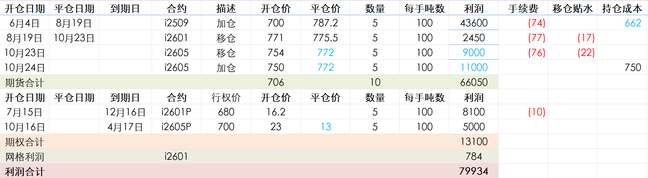 25年06月04日,i2509,700,5手,后移仓至i2601、i2605,成本降至662。