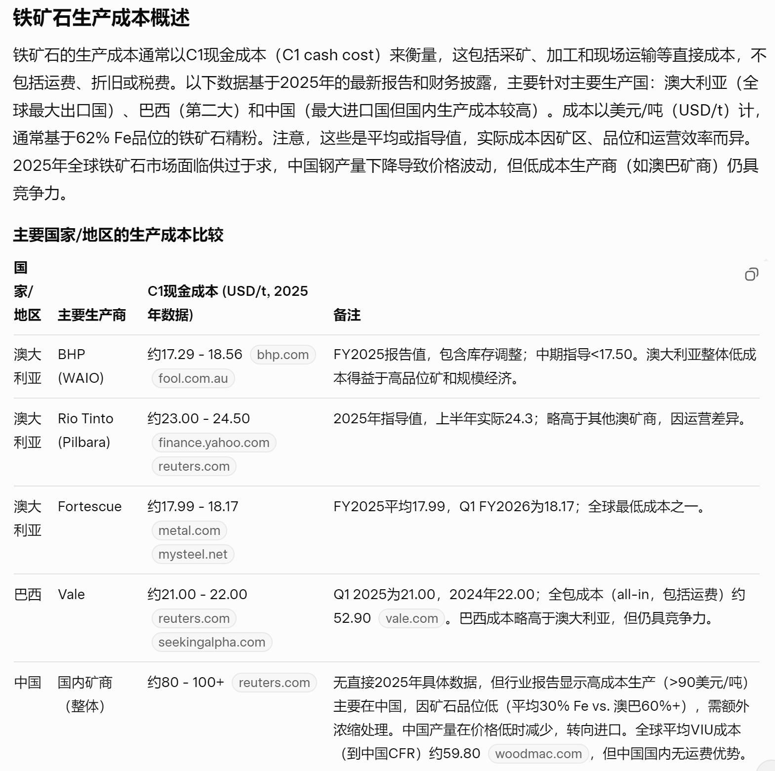 这里面提到,澳矿和巴西很低,中国很高。