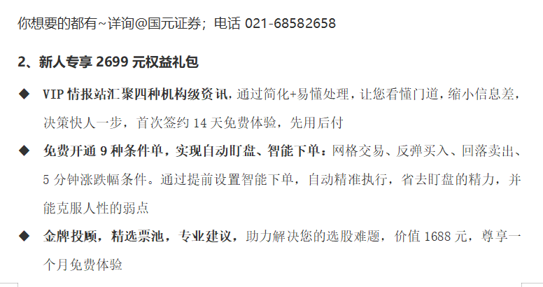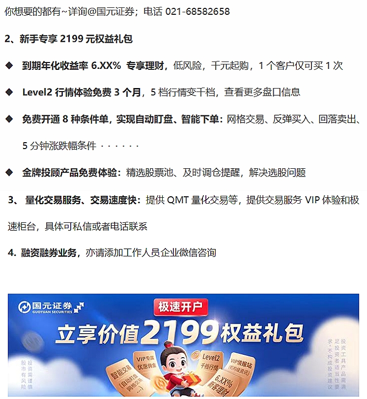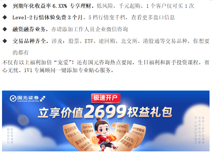 风险提示:市场有风险,投资需谨慎。客户领取优惠券进行产品和服务兑换时,请认真阅读产品相关协议。投资工具产品需满足投资者适当性要求,不构成投资建议,投资者应当自主进行投资并承担相应的投资风险。
