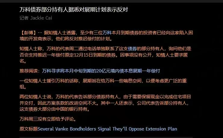 万科这个方案是肯定不会得到债权人的同意的,不知道万科是掌握了什么不为人知的筹码,还是只是一个降低债权人预期的博弈手段。