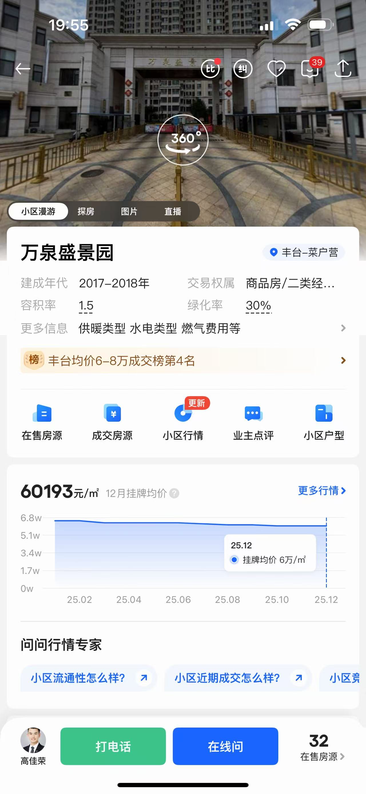 万泉盛景园,标价6万,楼间距宽敞明亮