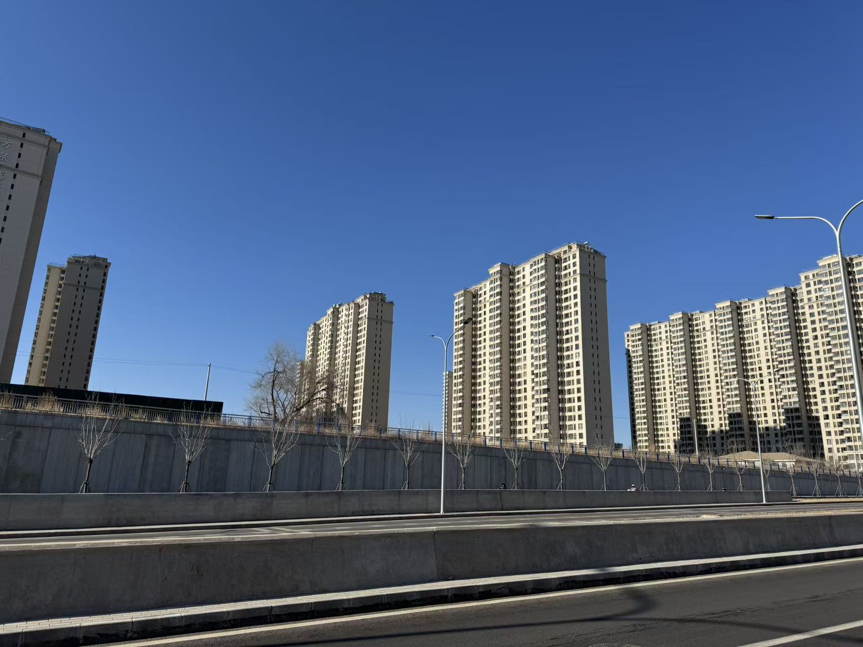 马路两边肩并肩有两个楼盘