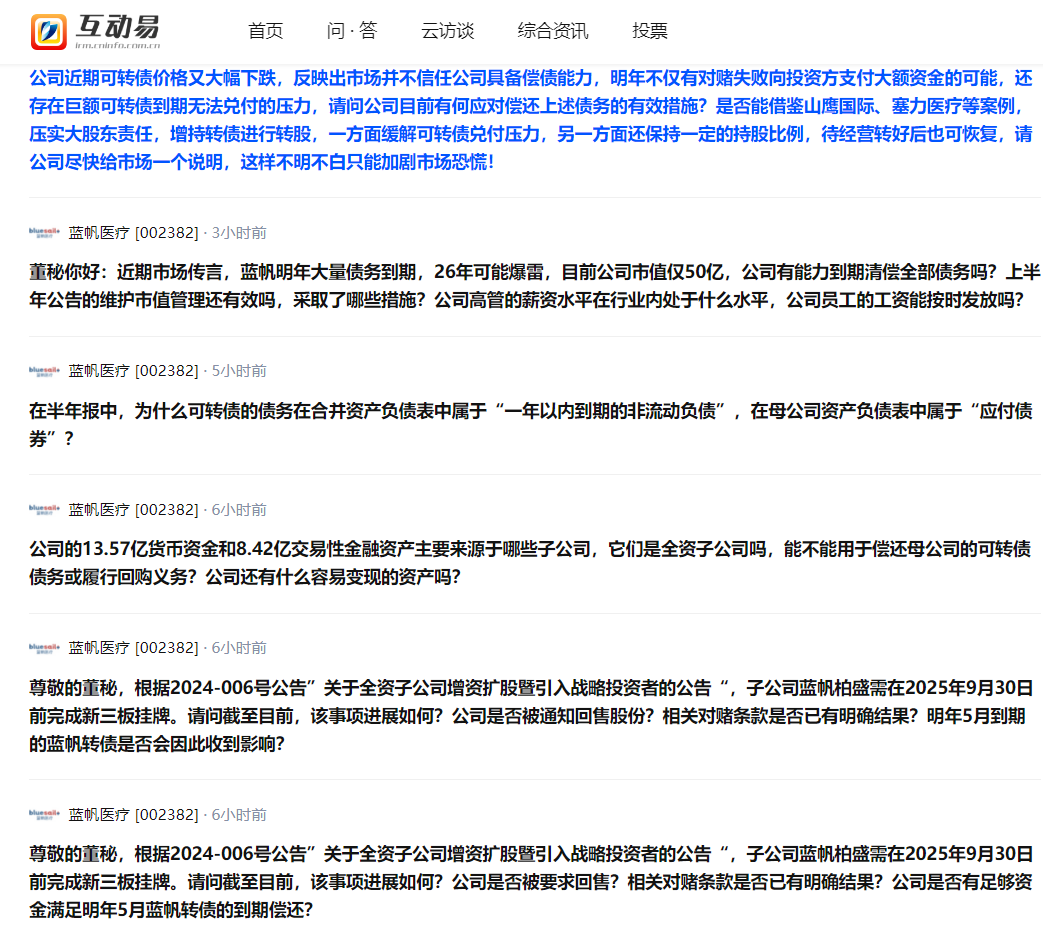 值得注意的是,本次战略投资方与蓝帆医疗签订了“对赌协议”,协议约定,蓝帆柏盛需在2026年9月30日前实现发行上市,如蓝帆柏盛未能达到“对赌协议”约定的条件,投资方有权要求蓝帆医疗回购所持有的股份,并支付年化10%的收益。