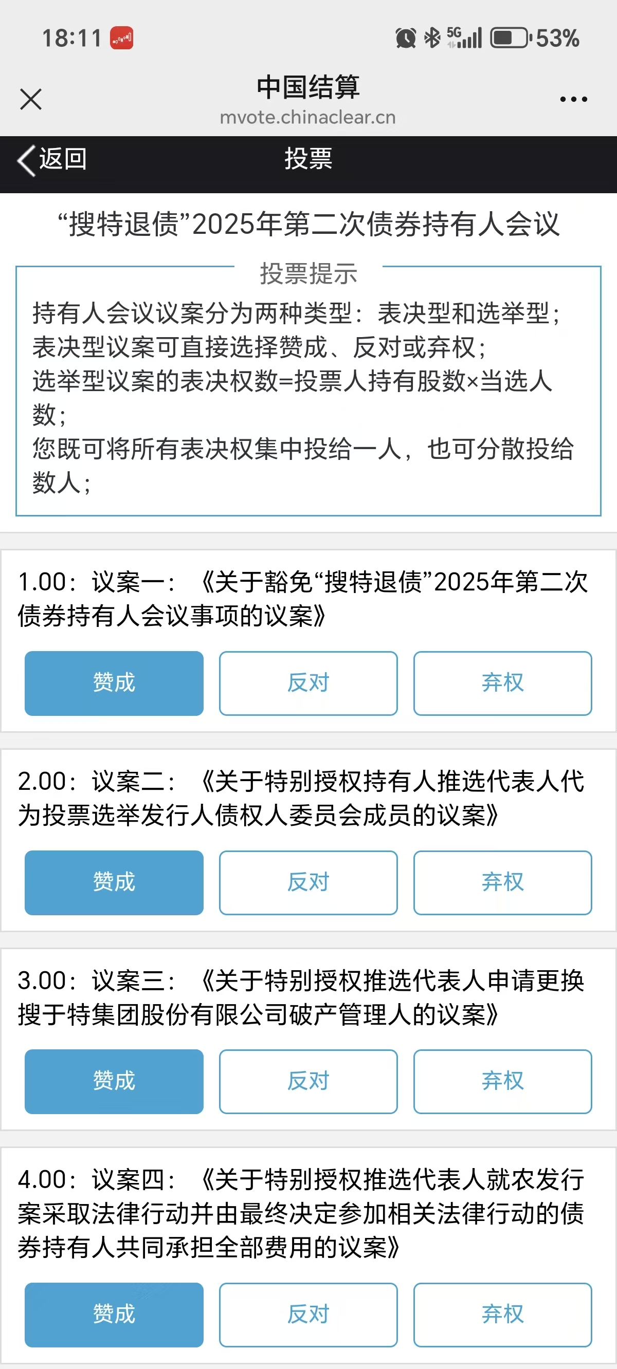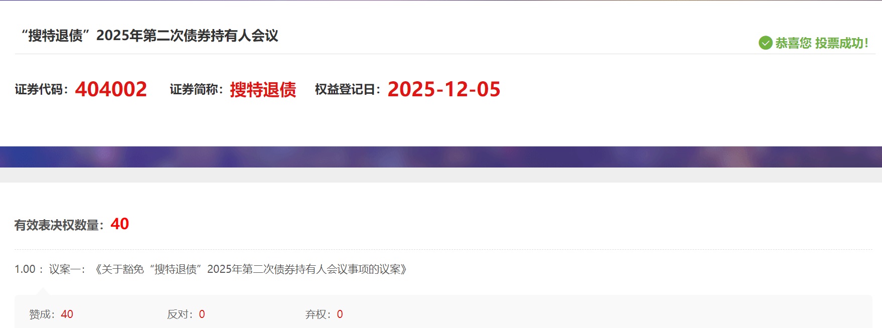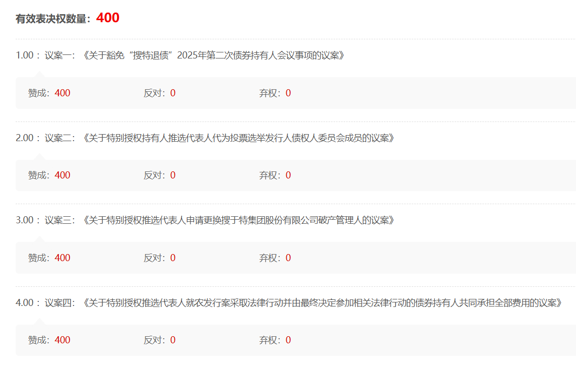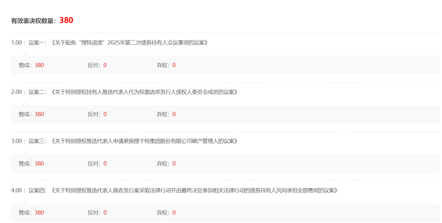 网络投票--》会议列表--》 搜索框 --》“搜特退债”或搜索 “404002” 即可看到 【“搜特退债”2025年第二次债券持有人会议】
