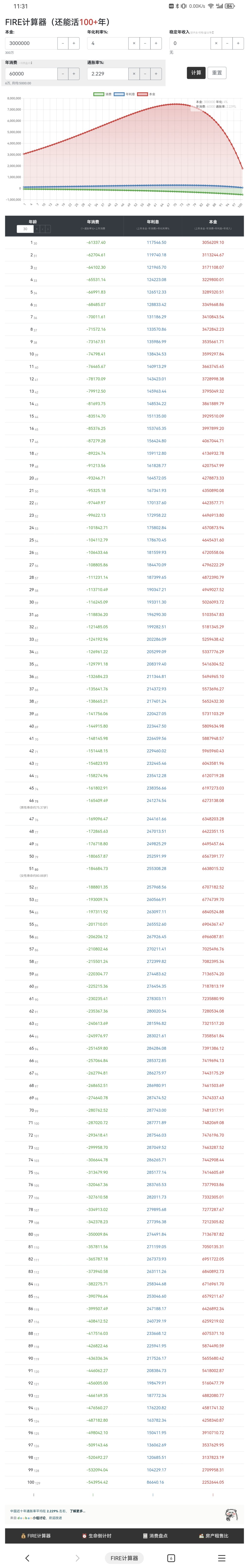 那么是不是就可以说,有合适的住房+300w的闲钱进行投资+投资的收益达到年化4%,就是提前退休的基本门槛。