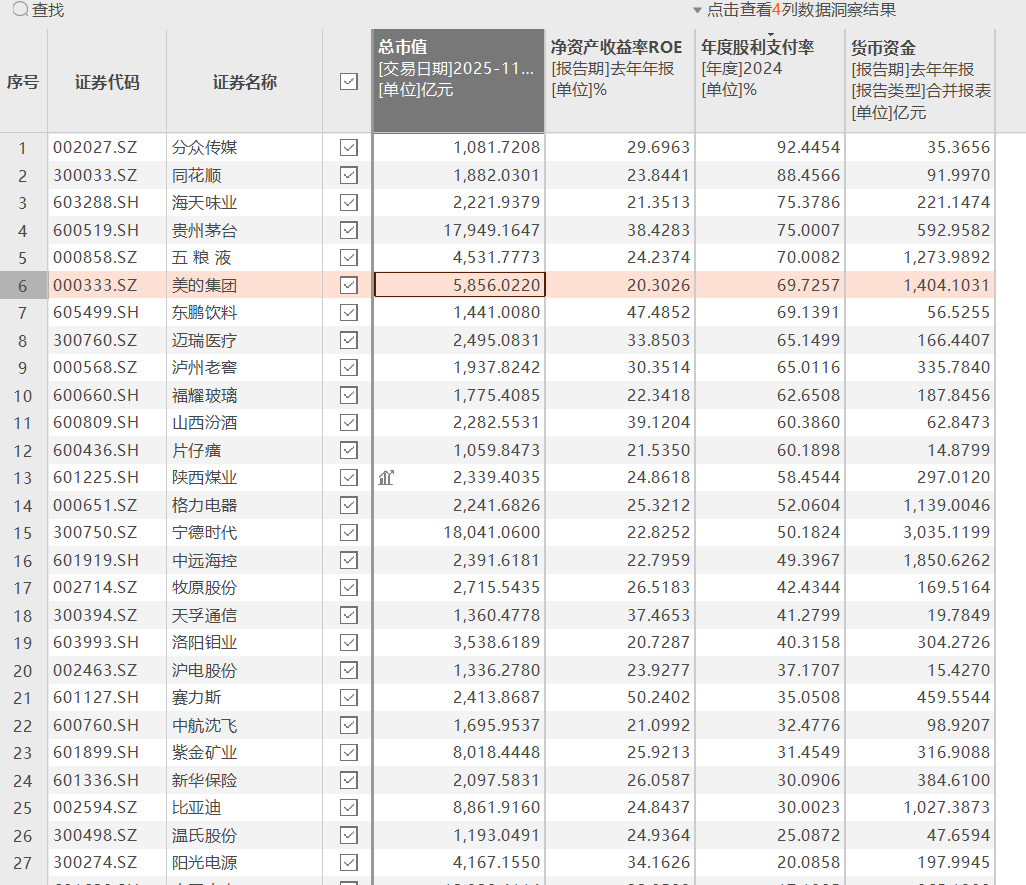 然后五粮液和美的满足现金千亿