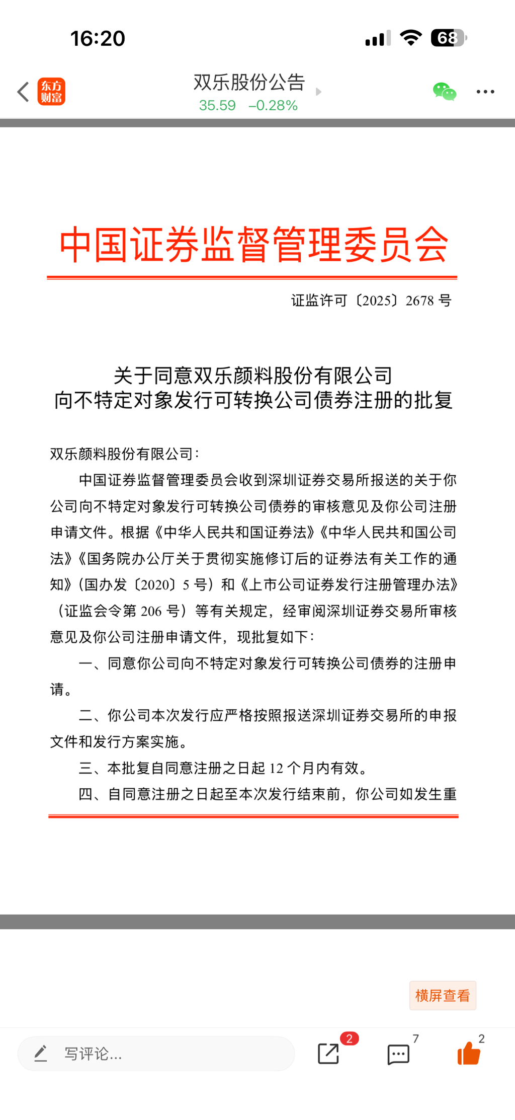 双乐股份已经获得可转债同意注册批复。