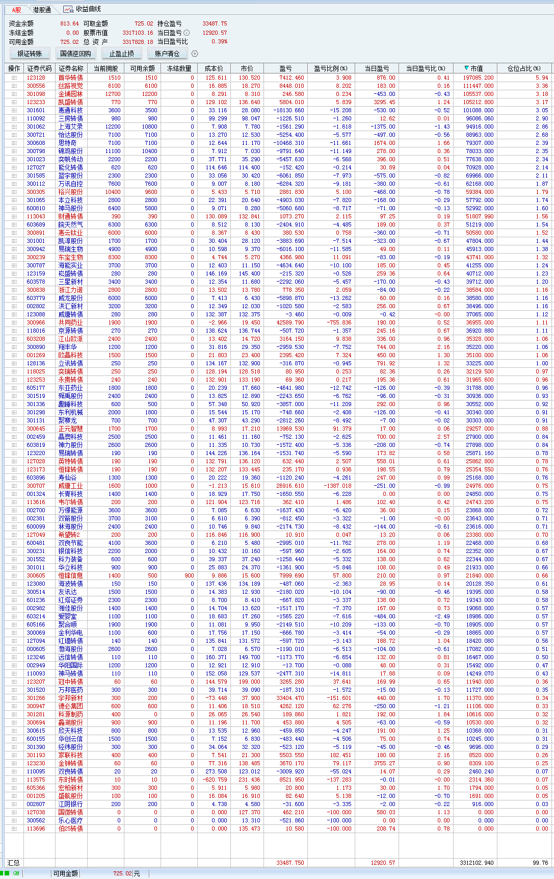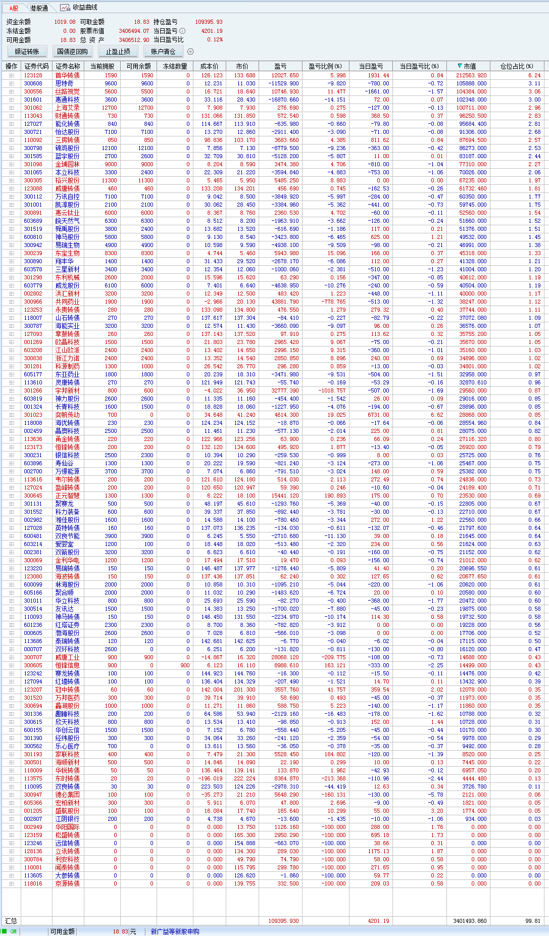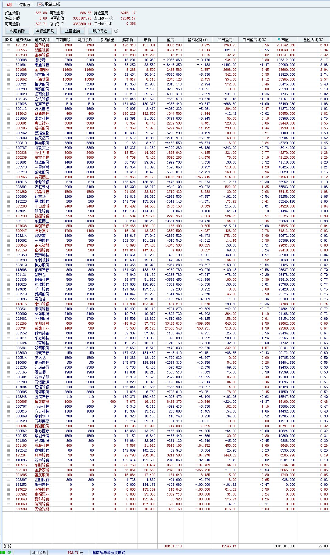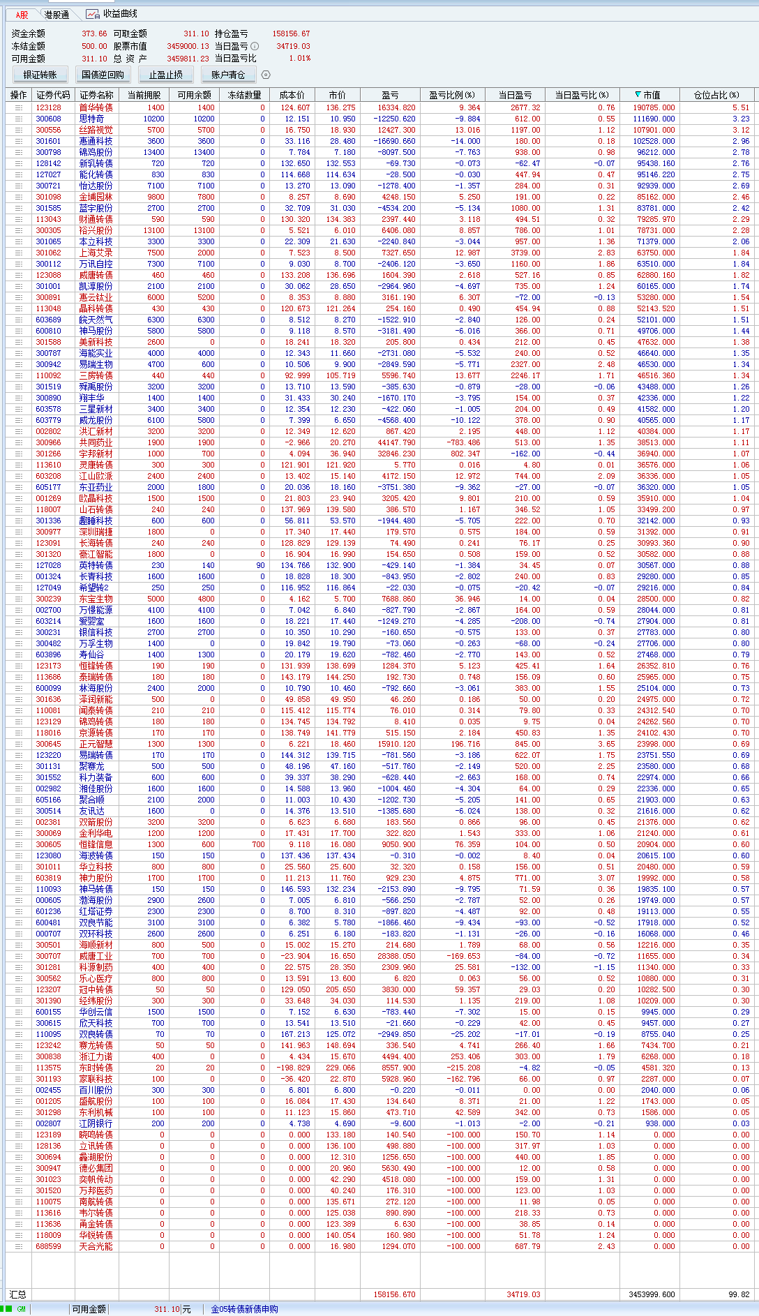 不过我比较奇怪的是,我的转债持仓,