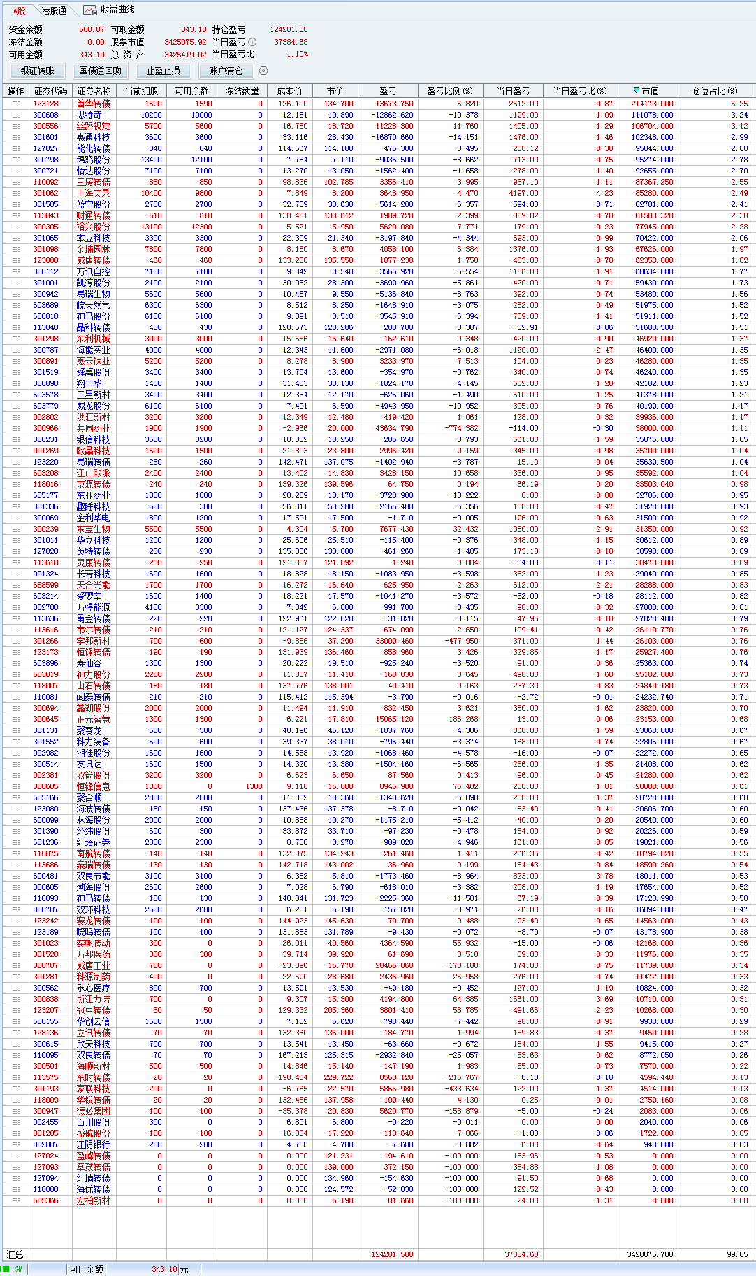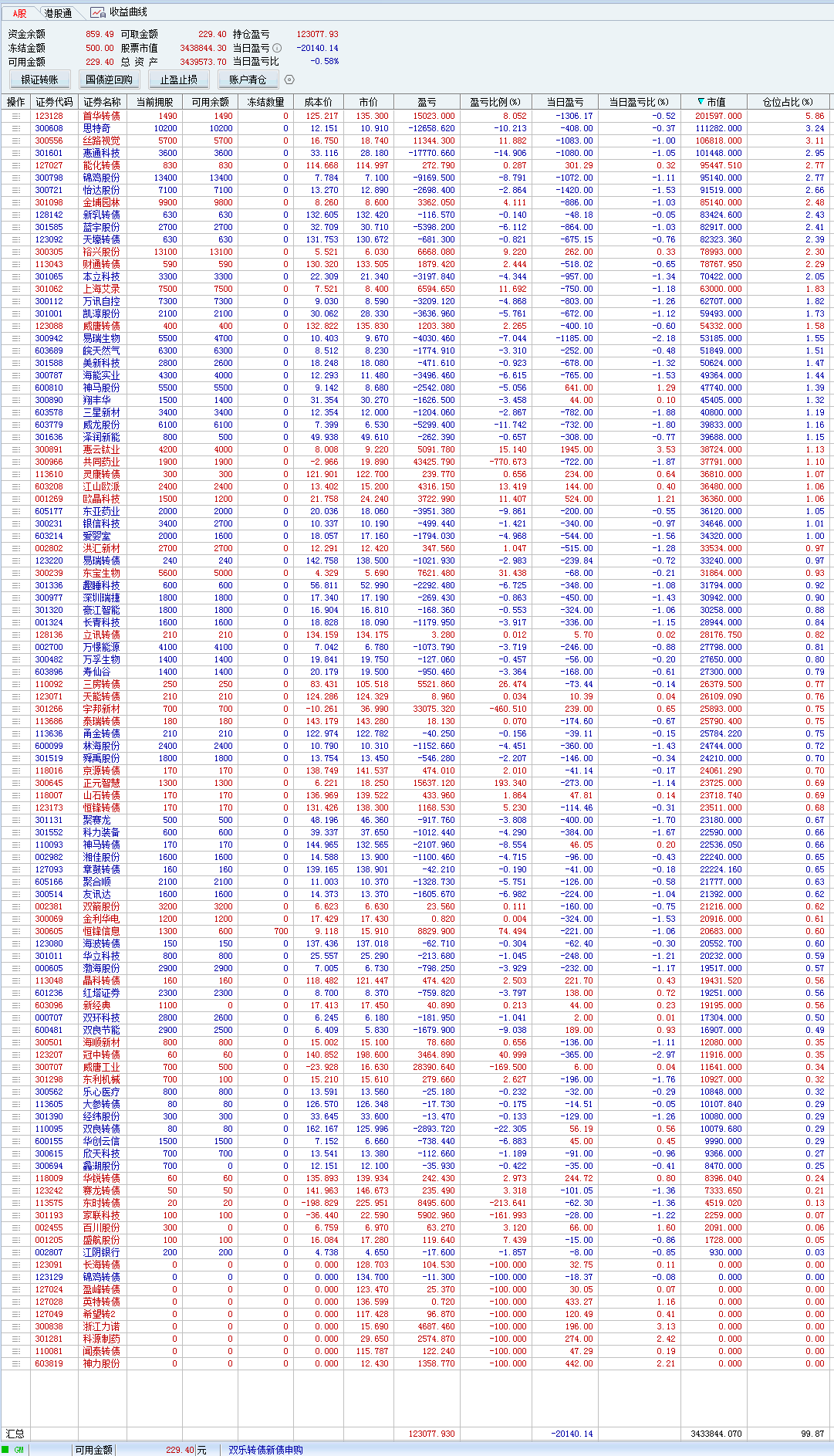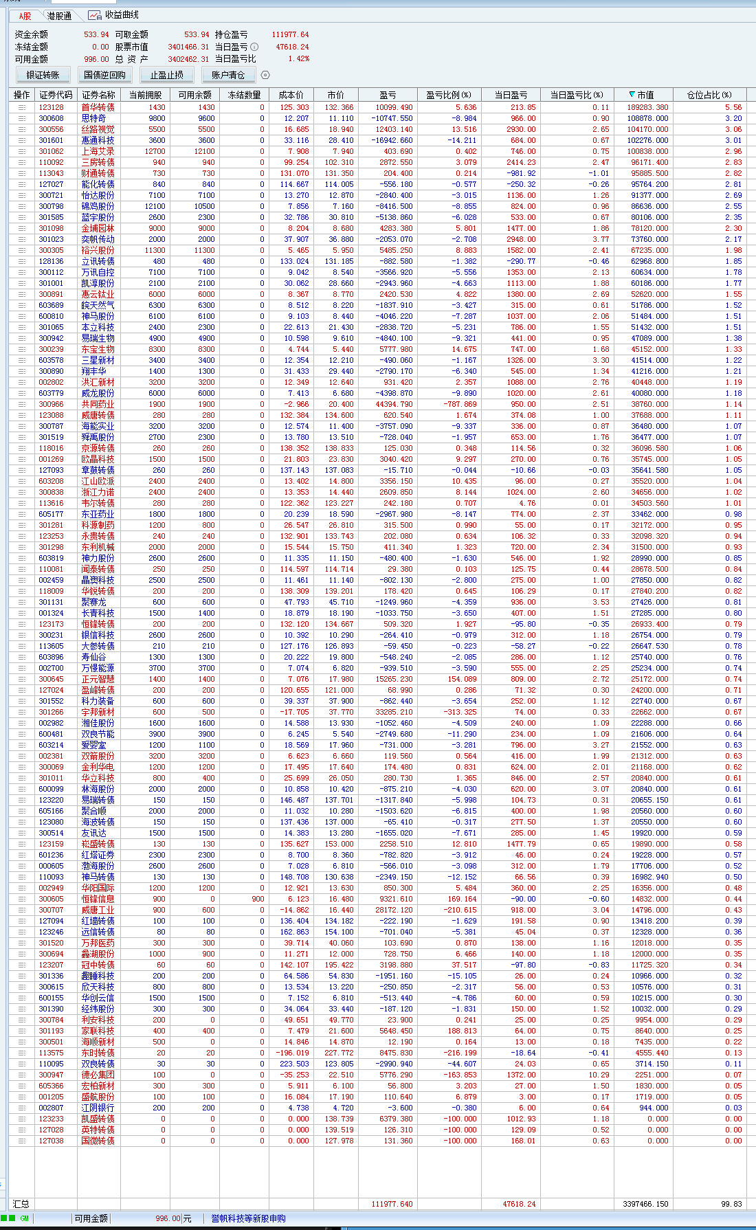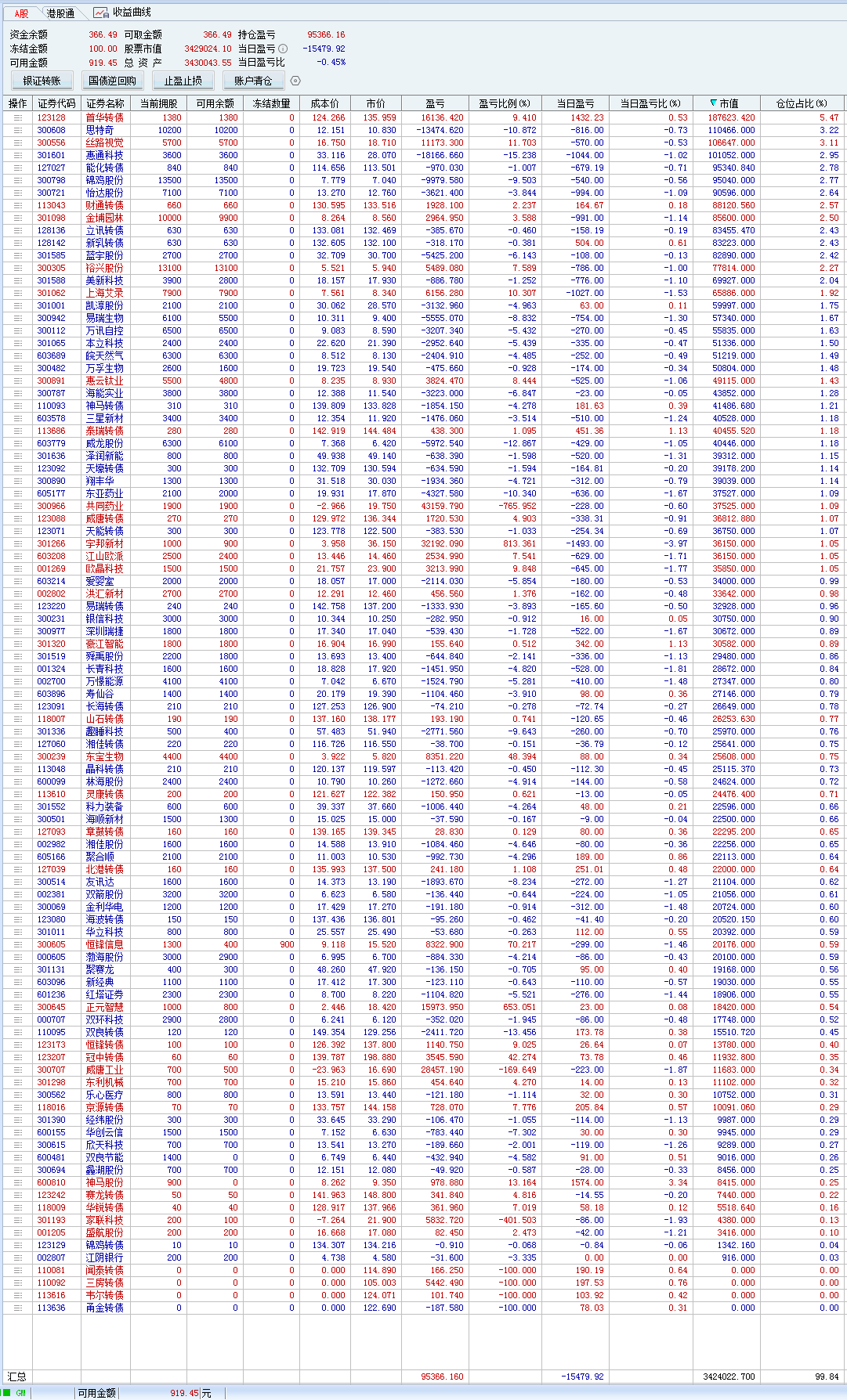不过我比较奇怪的是,我的转债持仓,