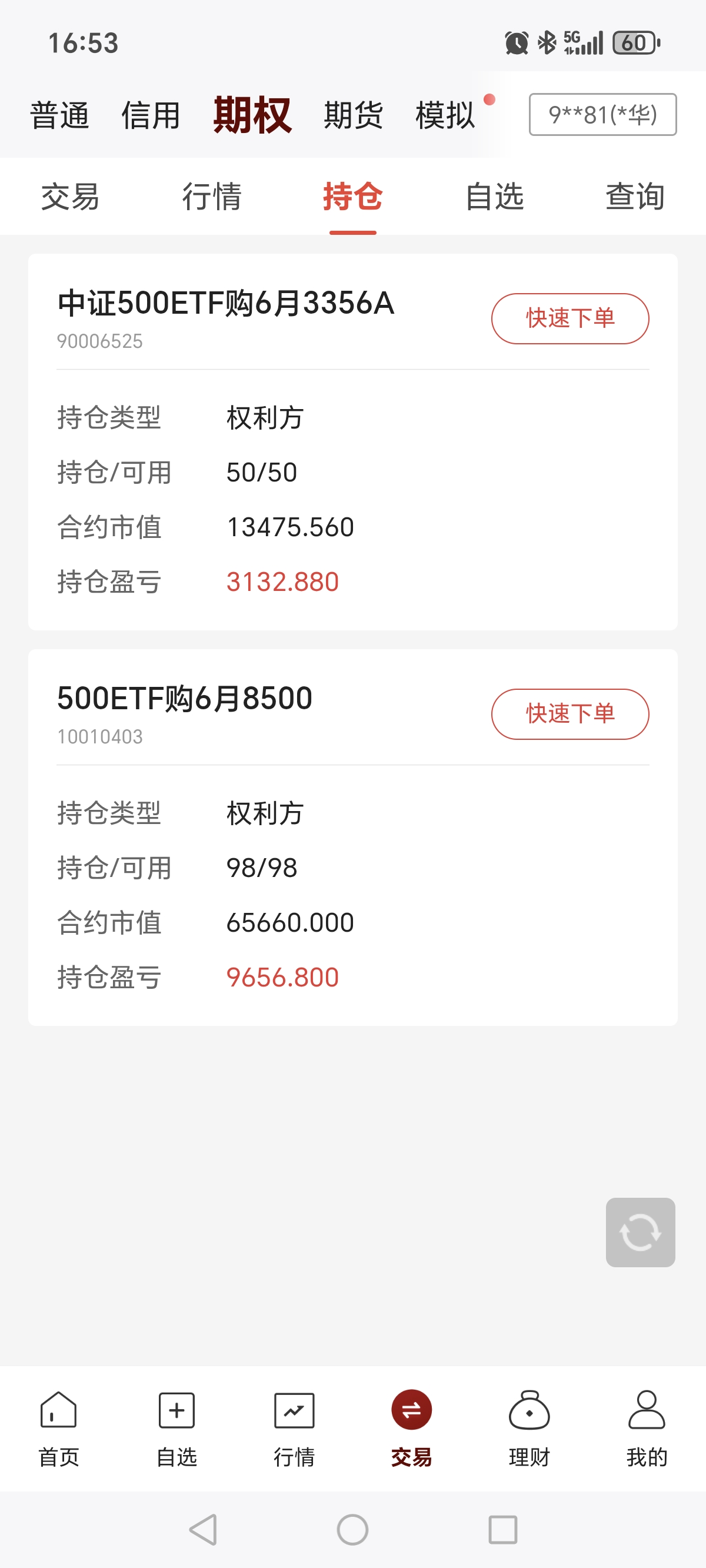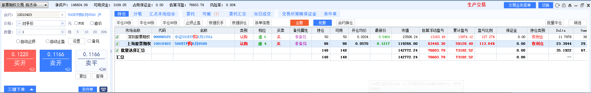 几个账户合计,最新持仓: