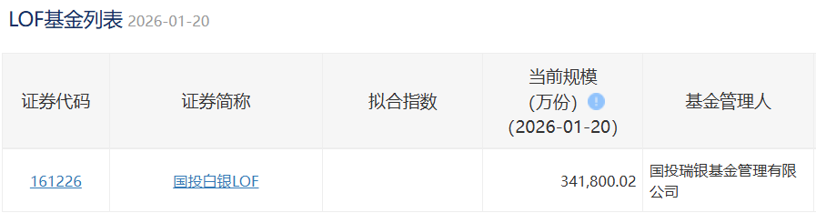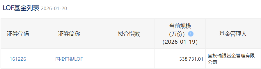 2026年1月19日,国投白银LOF场内份额338,731.01万份,新增2,629万份,1个身份证申购100元,相当于69.20万人申购。