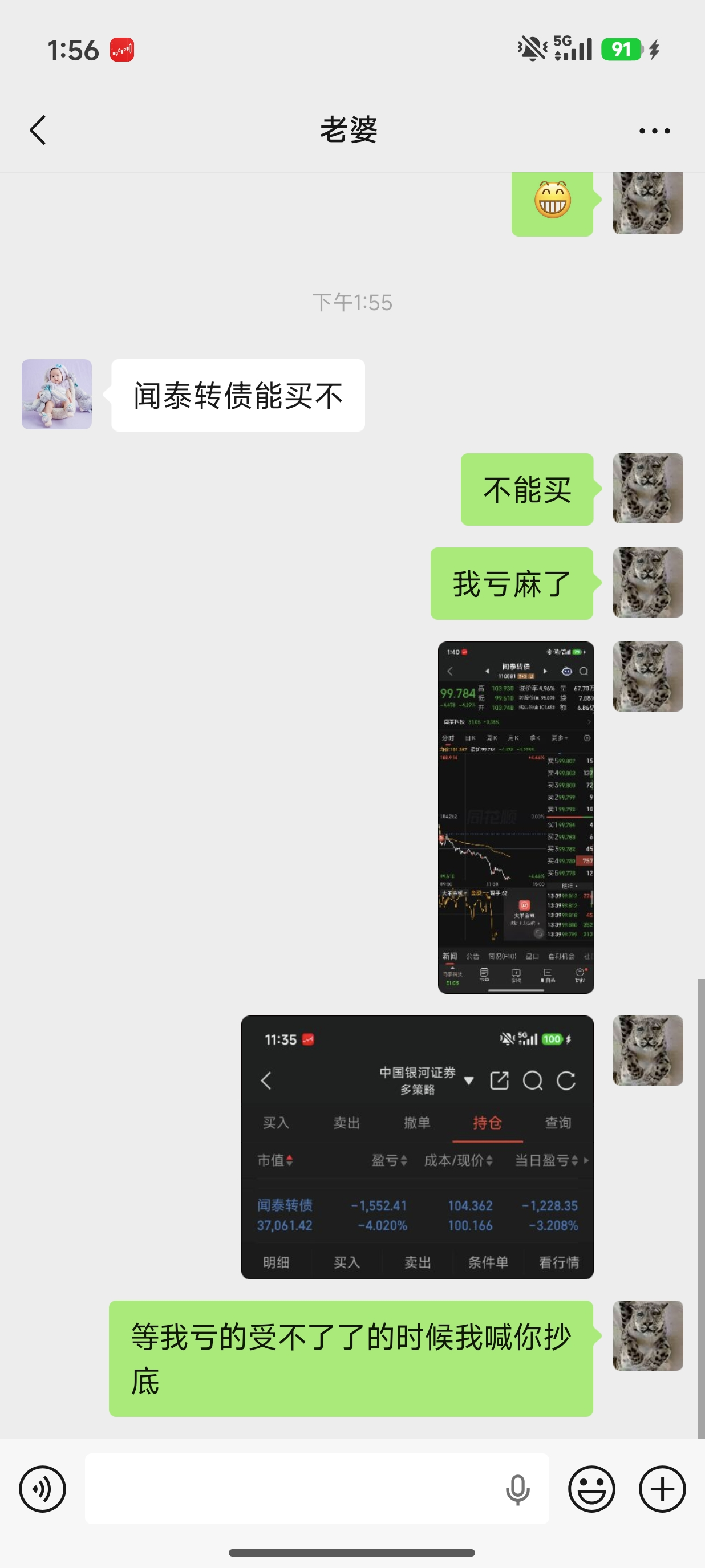 从近期公司各个层面的信息披露情况看,下修很大概率是为砸出最后一坑从而低位吃血筹的暗渡陈仓之策,最后大概率无法下修到底,仅象征性下修。提升了持仓中闻泰正股的占比,不过闻泰转债还是严重低估的。 zxz真的蔫坏蔫坏我还是怕st