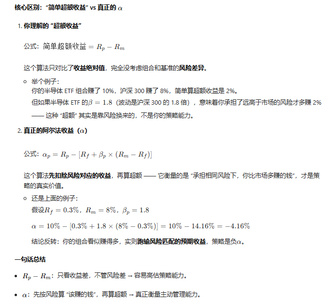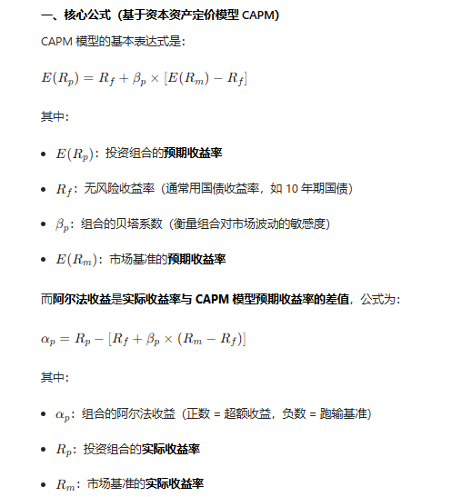 之前没有学过基于资本资产定价 CAPM模型,昨天一个朋友说公式,我去一搜才了解到真正的阿尔法计算方法---阿尔法收益是实际收益率与 CAPM 模型预期收益率的差值