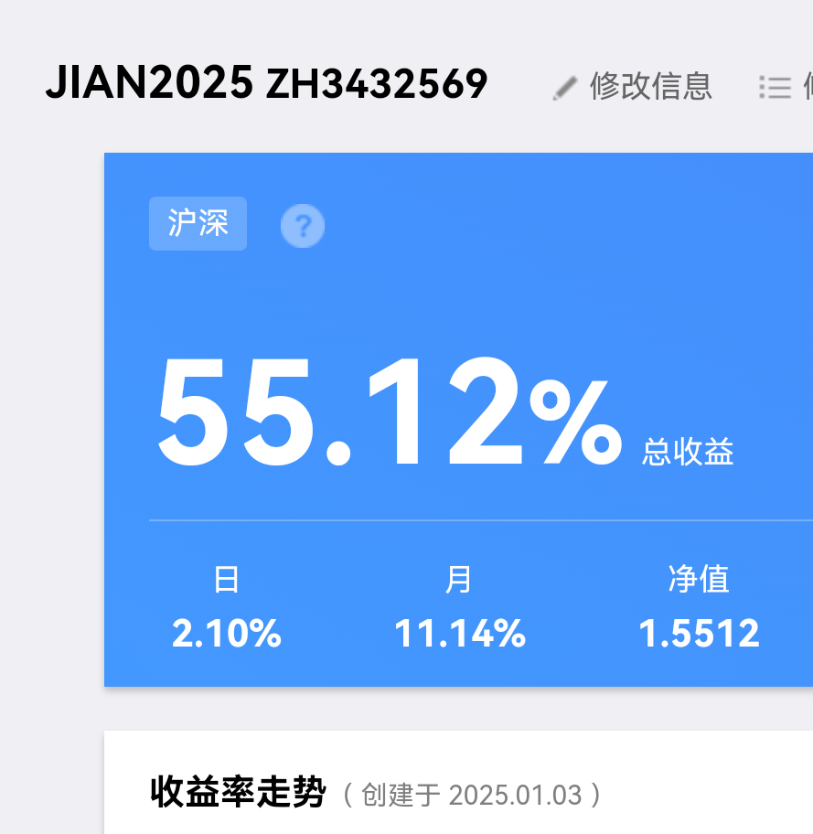 A股的部分,今年模拟盘收益为55%。年初建仓后很少操作。持仓数量18只(按仓位排序):511260(十年国债ETF,零涨)、藏格矿业(涨幅最大)、中矿资源(涨幅大)、巨化、中远海控、华水(零涨)、紫金(涨幅大)、云天化、盛屯矿业(涨幅大)、云铝(涨幅大)、宏创控股(涨幅大)、长电(零涨)。沃尔核材、北方华创、招行、上海机场、茅台、神华,都是小仓位。主要受益于金属的大牛市。