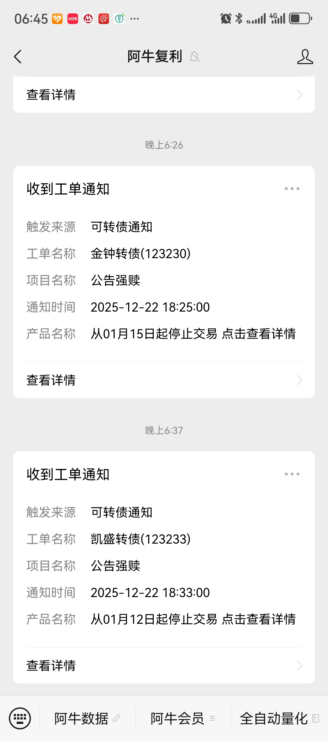 转股信息: 凯盛 转股1亿 利群 转股1.6千万 博23 新化 转股2.3千万 沪工 转股1.5千万 再22 转股1.4千万 今日 恒锋 凯盛 金钟 最快差一天满足可能强赎, 今日 惠云 最快差一天满足可能触发下修。