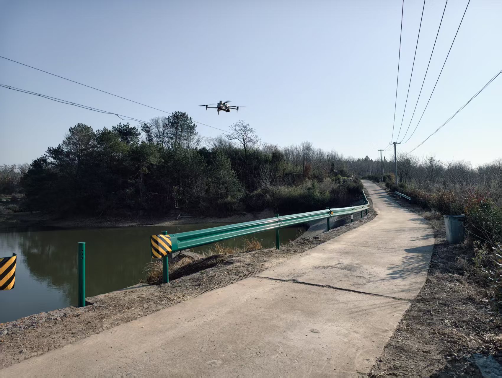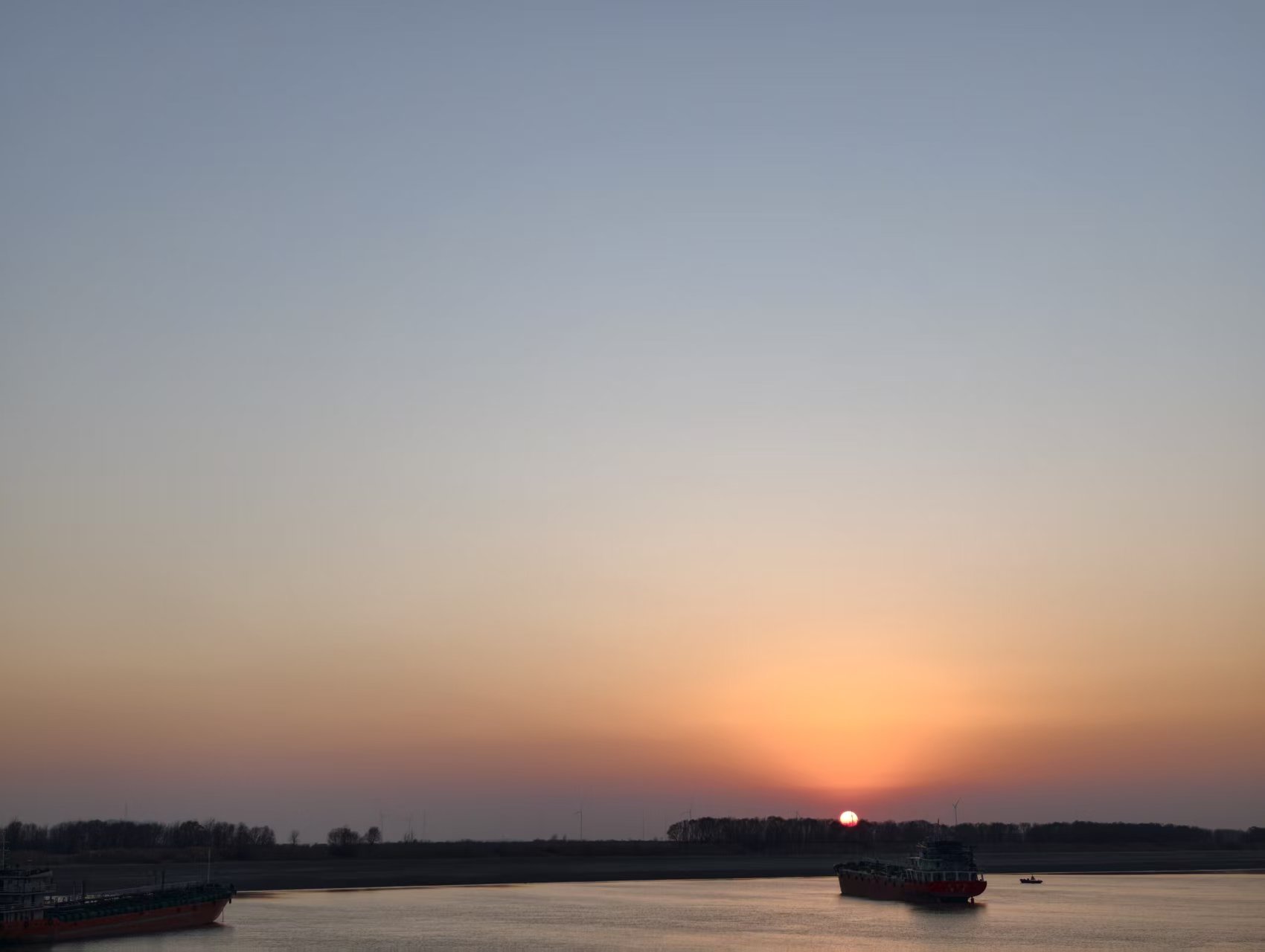 时值初冬,但是此处天气不甚寒冷,散步到江堤还是挺舒服的。靠江一侧的堤坝是满铺防护的六棱块,但外侧堤坝长满了杂草,草色多已泛黄,一老头站在堤坝上扬着鞭子,看着正在细嚼慢咽的几头老牛,应该是水牛吧。前方的河滩地上响起歌声,一位大爷拿着话筒在引吭高歌,旁边还放着个大音箱,虽然声音很大而且跑调,不过这里离居民区较远,也算不得扰民了。蓝天下,微风中,漫江碧透,两位大爷悠然自得。