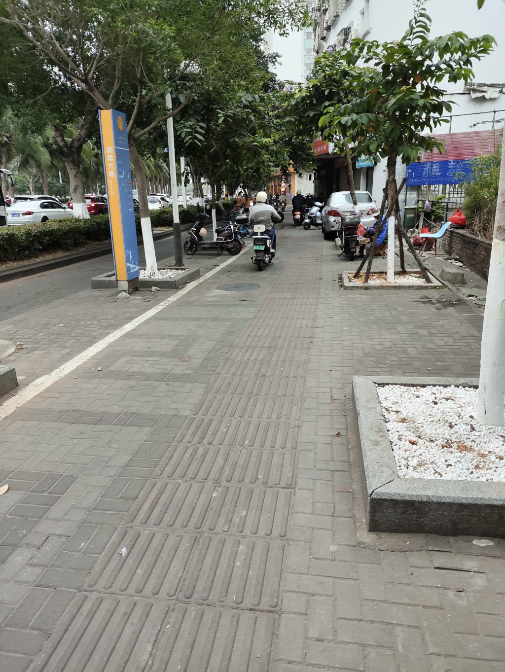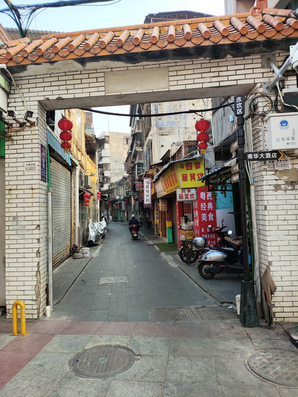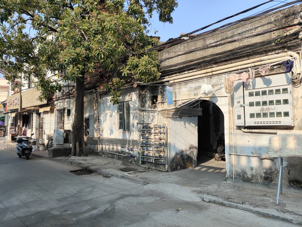 但是比较悲催的是,这辆电动车的续航里程确实不远。上岛之后又起了不到10公里电就不是很多了。根据我原来的计划,是在岛上的电动车店里快充,但是这里离电动车店还比较远,于是我果断的转进了一个巷子里,我想一些老旧的小区附近应该会有充电点。我猜的确实没错,拐进去没多远就发现了一个小的充电点,总共只有几个充电口,还好有一个空闲。