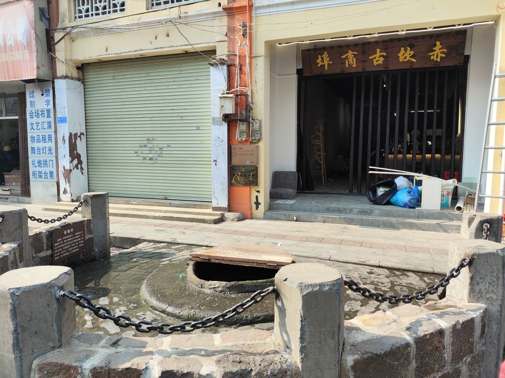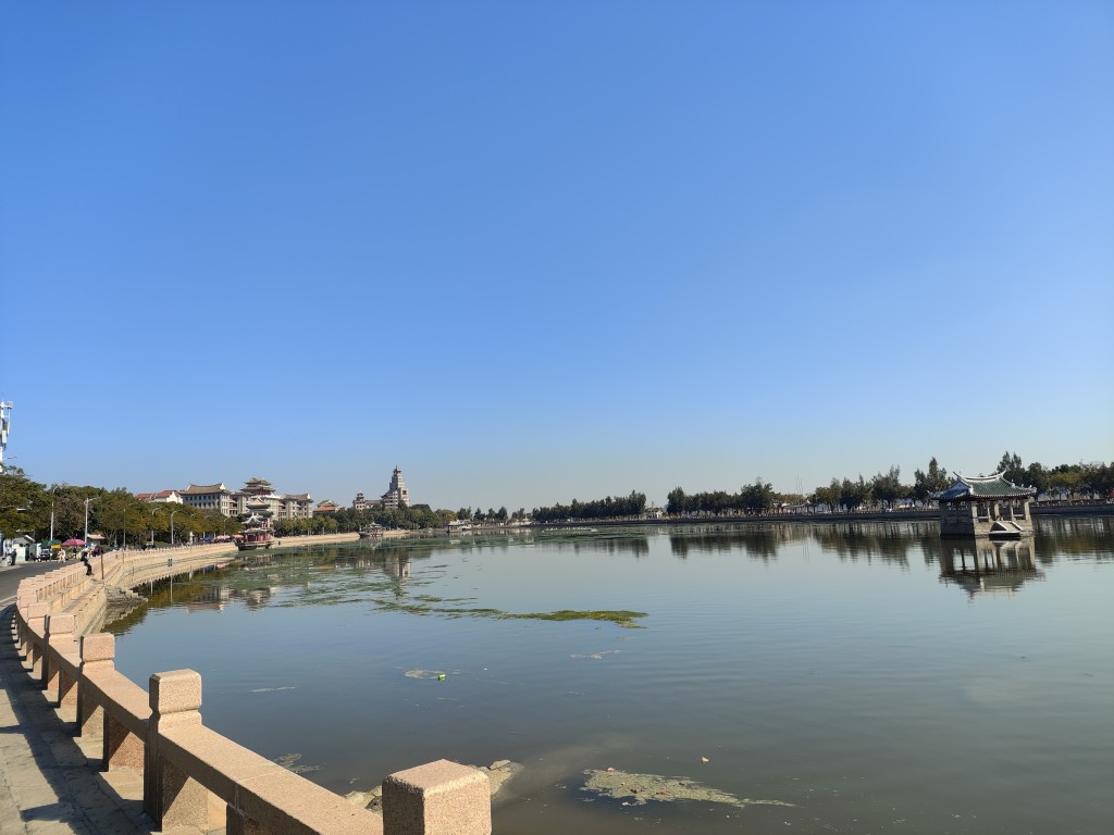 地图上搜素附近有“三皇里夜市”,于是想过去看看热不热闹,顺便解决午饭。到了之后发现这里是一片新建的仿古商业街,可能是还没有完全落地,也可能是晚上才会繁华,街道两旁只有零星的开张的店铺,一路上也没什么客人,最终也没发现什么心仪的美食,只能悻悻离开。旁边的江堤上有座望津楼,其实就是堤坝上的亭子,外人是不能上楼的。如果开放的话,倒是可以登高远眺,临江赋诗。堤坝下的江岸也硬化成了广场,一些闲散的老人,晒太阳的晒太阳,钓鱼的钓鱼,锻炼的锻炼,老年人的生活才是真的生活,年轻人即使辞职在家又怎么能放下琐事?