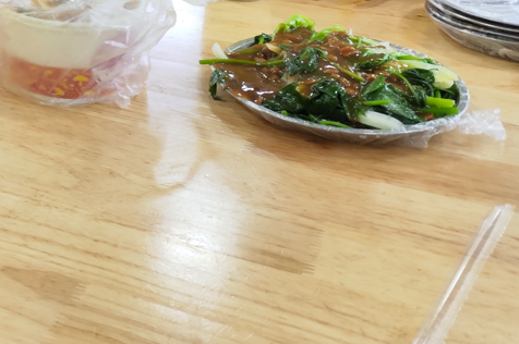 跟其他的大学一样,学校周边有很多个小巷子,基本上都是小吃街,以前我们学校周边的这种街道叫做堕落街。可能因为是放假了的缘故,所以巷子里人并不是很多,有一些店铺已经关门。所以说做学生生意的老板也不错,还可以跟学生一样有寒暑假。一路上并没有什么小吃摊,所以我选择了一家快餐店。这家快餐店是自助选餐,按重收费,米饭和汤是免费的,还有免费的饮料。这种模式在大学附近,现在很流行。