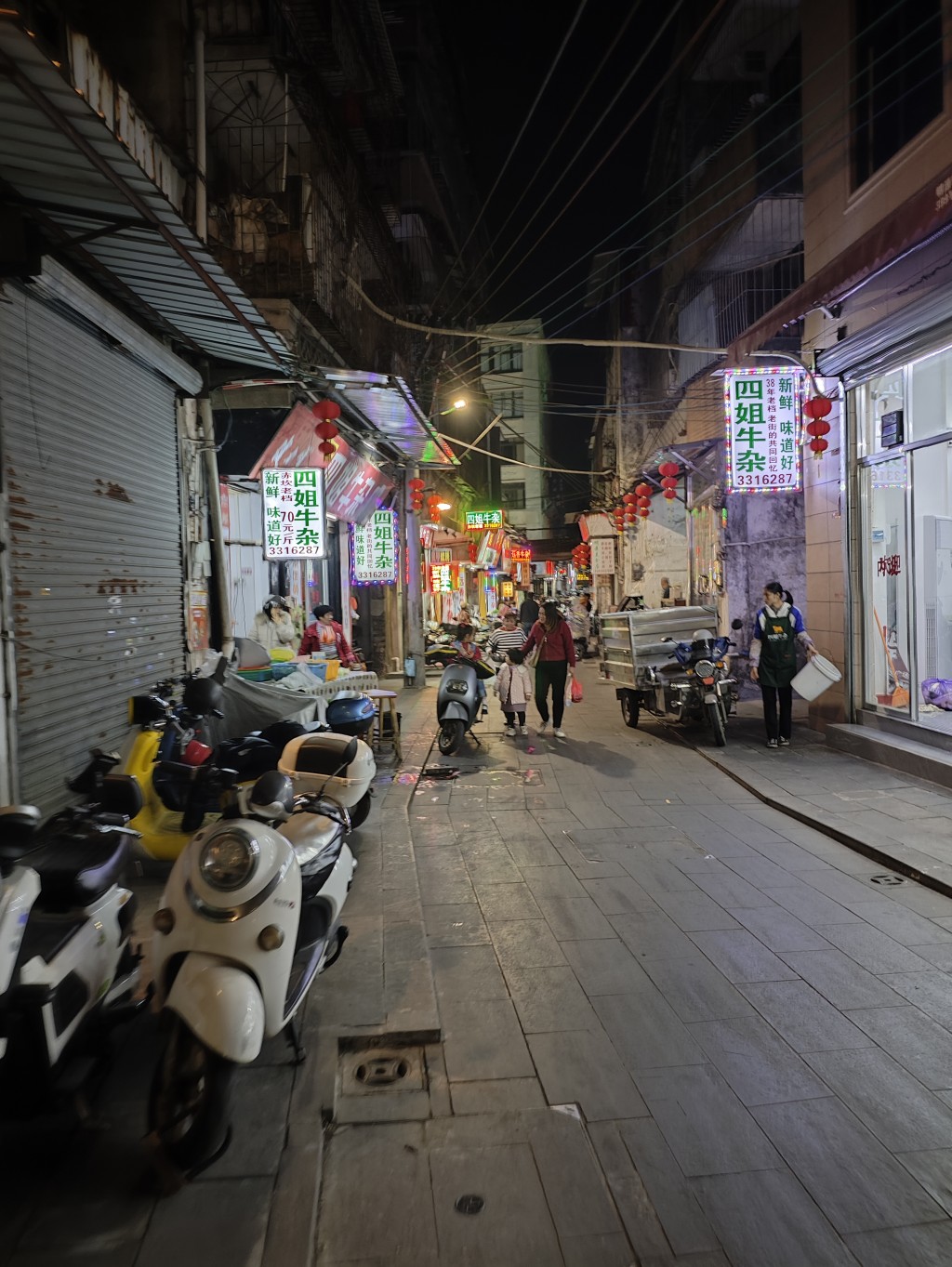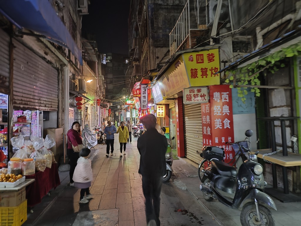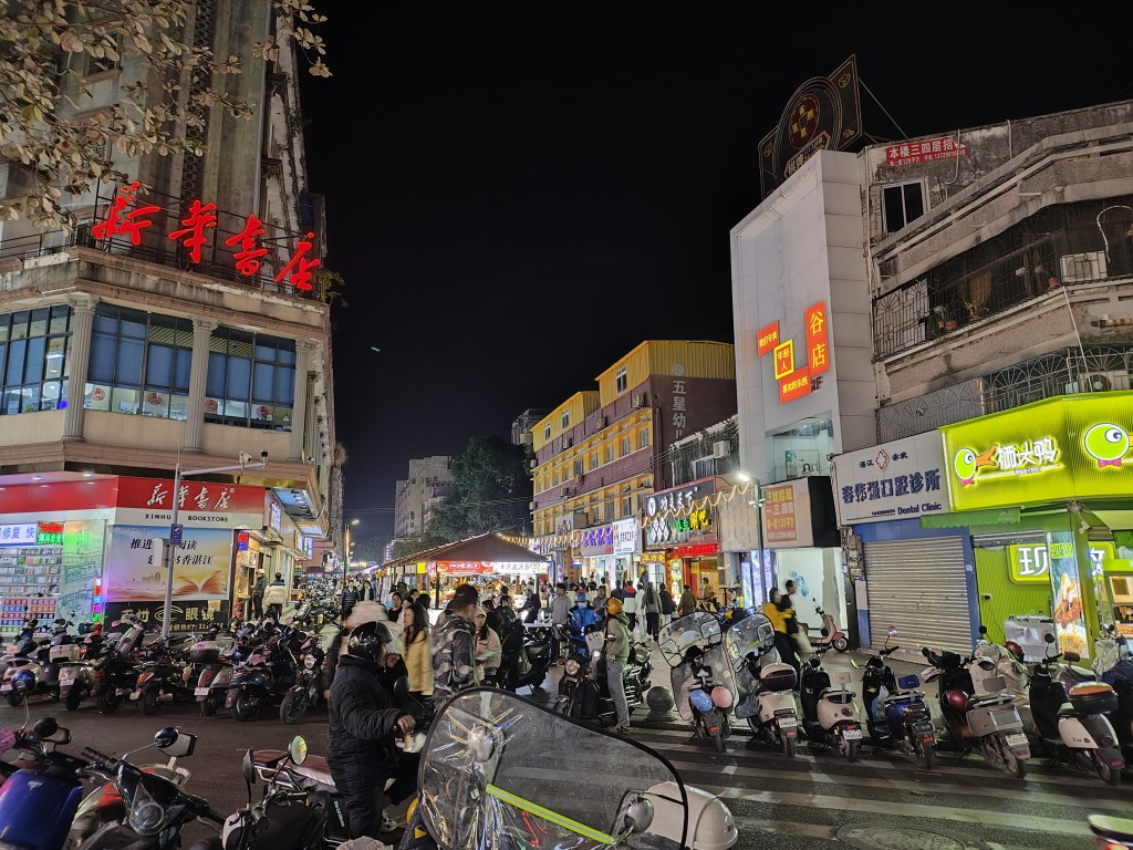晚上我们又来到赤坎老街的夜市,果然这里只有晚上营业。夜市的两条街熙熙攘攘,各个摊位上人声鼎沸,两旁的沿街店铺也热闹起来。