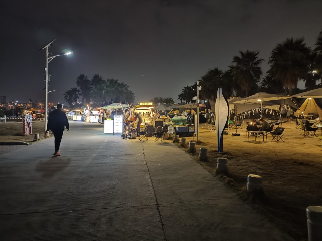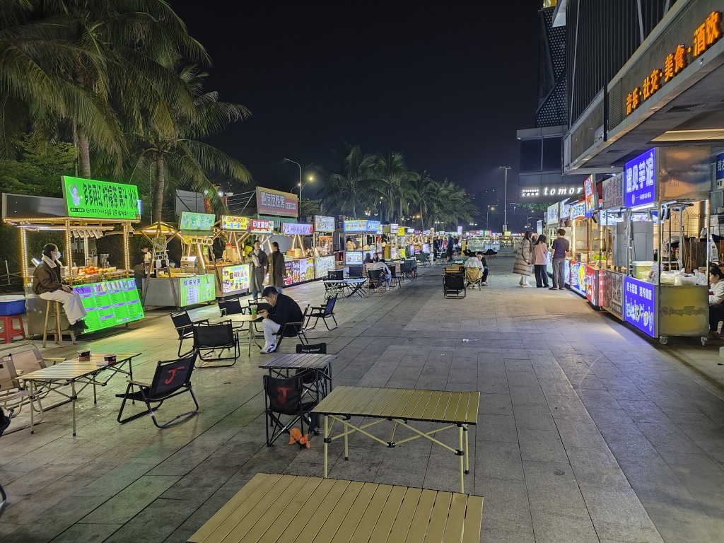 在金沙湾沙滩玩到了傍晚,终于吃到了蚝烙,很好吃。返程的时候看到某商场的旁边,沿街都是小摊,好像是一个比较大的夜市。在这里点了生蚝炒粉,等很多小吃。