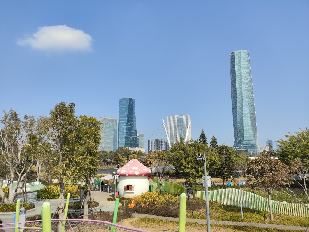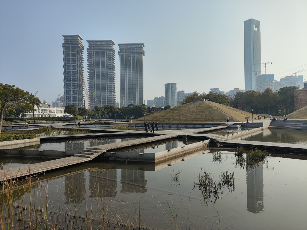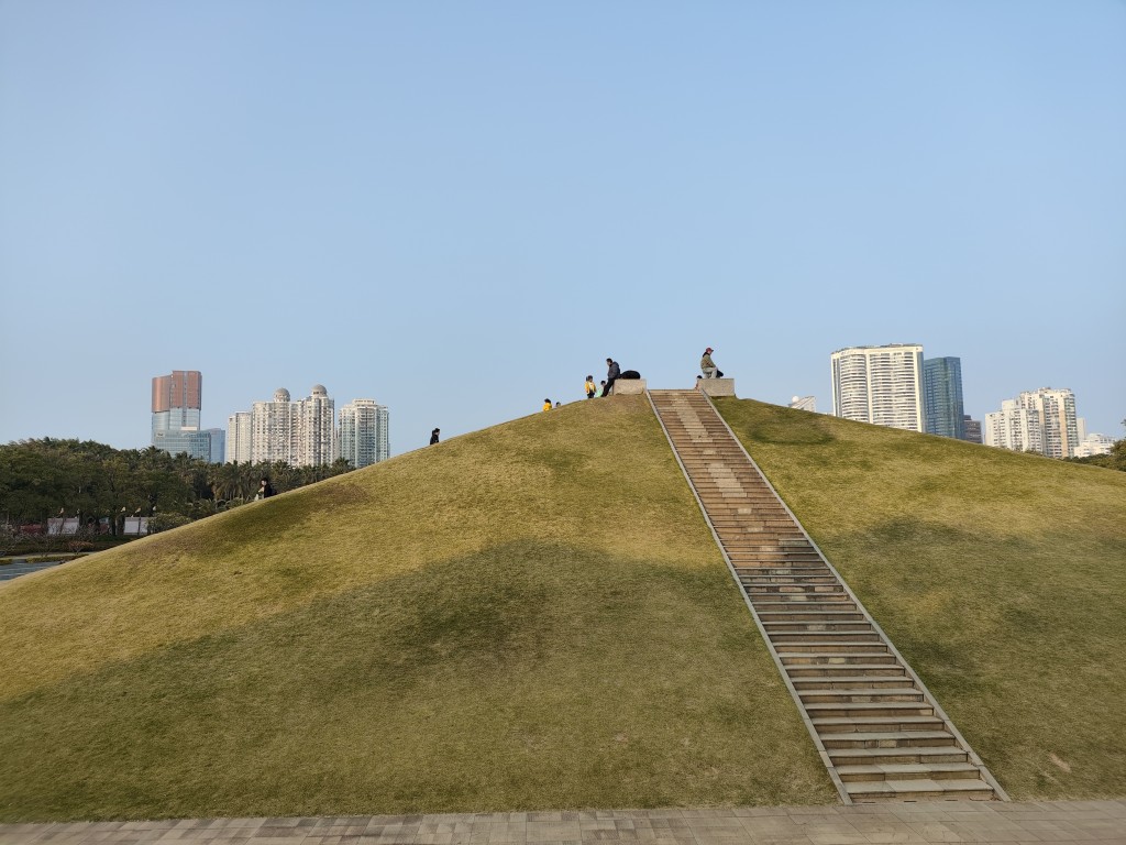 下午2:30多的时候,电差不多充满了。于是我们前往此行计划中的第1个目的地海湾公园。这里有一处香港回归祖国纪念碑,这边虽然沿海,但没有沙滩,不过政府建了一个小沙滩,供孩子们玩耍,涨潮的时候,海水会漫过所有的沙滩。公园里还有很多其他的游乐设施,还有一个人工建的大沙丘,我估计可能是原先建设时候的弃土堆,还是挺有创意的。