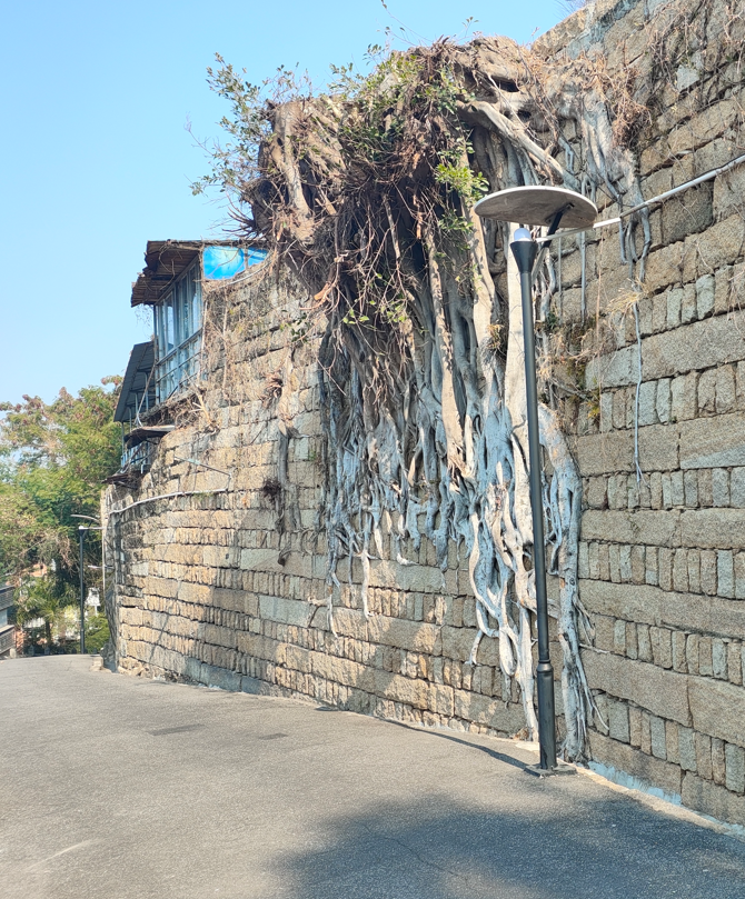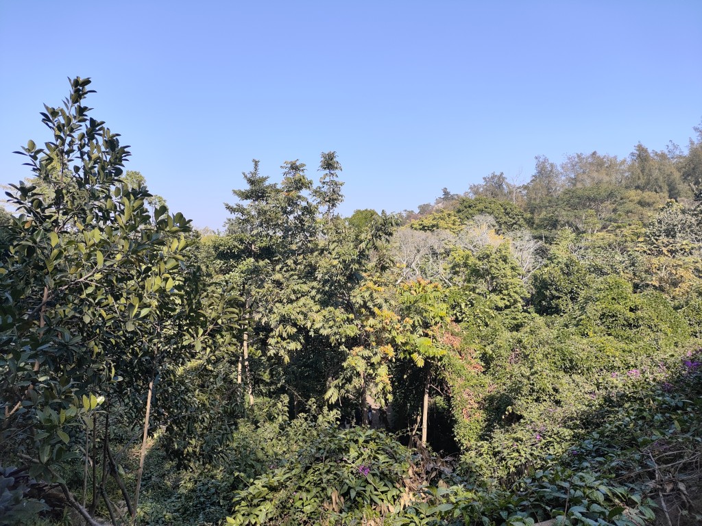 沿着溪流继续往下,还是可以随处可见题刻。不过这些题课大部分都是近现代所提。有一个题课非常的有意思,写的是偷出家门,步游鼎湖。也不知道是哪个熊孩子用什么器具去刻的。沿着林荫里的石阶继续往下走,不远就能到景区入口附近。正对景区入口一个花坛内,一株枝繁叶茂的参天大树,像我这个来自北方的井底之蛙,展示她的优雅与风情。这些亚热带的植物让我一次次为之惊艳,可惜我的拍照水平不佳,无法展示出我对他们的震撼。