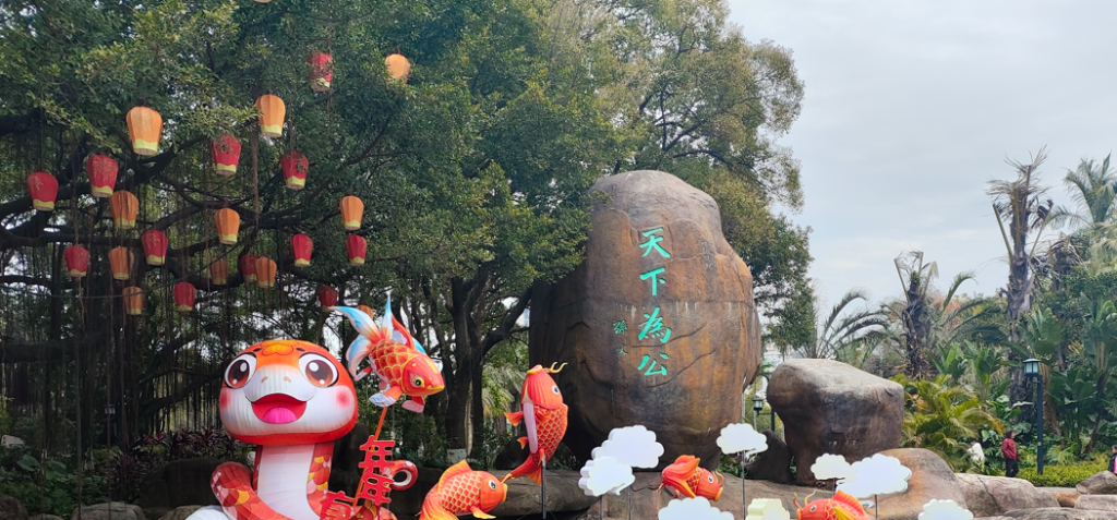 第一站是宝鼎园,也就是问鼎祈福的地方,入口处是有一神龟的许愿池,许愿还有“国泰民安,世界和平”,这么大的愿不知道神龟能不能接得住。再往里就是网红的九龙宝鼎,说是世界最大。既然是宝鼎园,自然不能只有一鼎,四周安放了很多国内出土的知名宝鼎的仿品。本以为抛许愿球挺难的,但是现场看到宝鼎其实很大,一般大人都能扔进,我也是十投九中,不过多几个人一起扔还是挺快乐的。