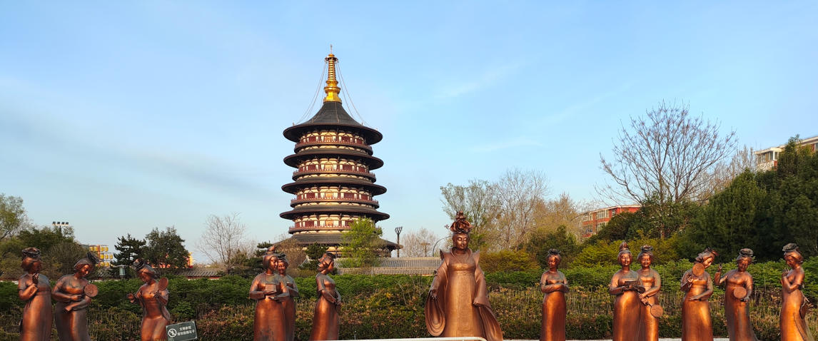 傍晚的时候我扫了一辆共享电动车,骑车去了隋唐洛阳城九洲池遗址。本来这里基本上每天都会有演出活动了,但是我们去的那天恰好没有比较失望,不过景色还是不错的。