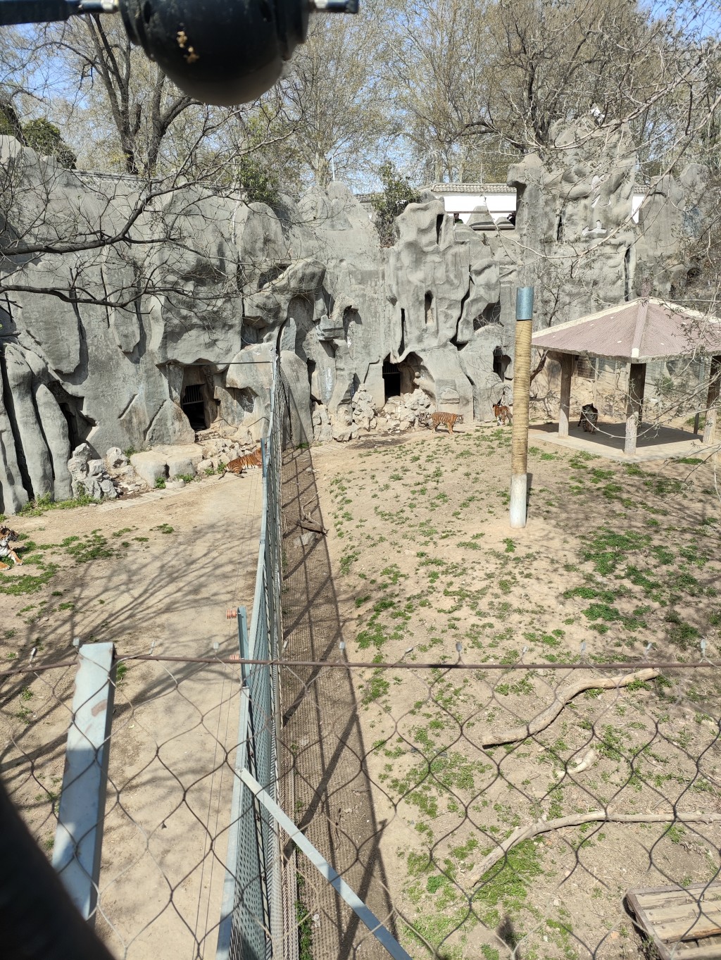 不过公园里有一个小型动物园,听说里面还有老虎喂食,于是整个一上午我们都在参观动物园。这里饲养了好几只老虎,饲养员是把肉挂在铁丝上,通过铁丝滑到老虎面前,虽然我去过很多次公园了,但是还是第1次见到老虎喂食,在这里我们驻足观看了许久。