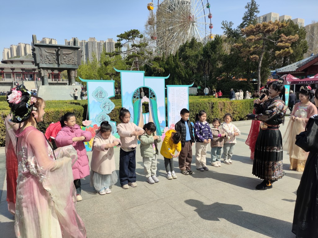 随后我们坐地铁去王城公园,因为朋友听同事说,公园里的牡丹已经开了。王城公园是一个收费公园,票价40。里面有很多的古装爱好者,公园也组织了很多npc互动活动。孩子参与了几个互动活动,很开心的。10点多的时候朋友也过来了,这时来游玩的人也多了起来。