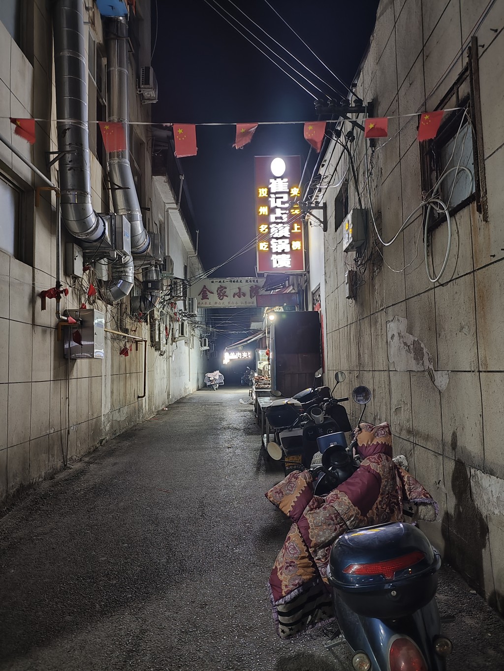 饭后我们骑着电动车在城里逛了逛,小县城晚上并没有多少人出来。
