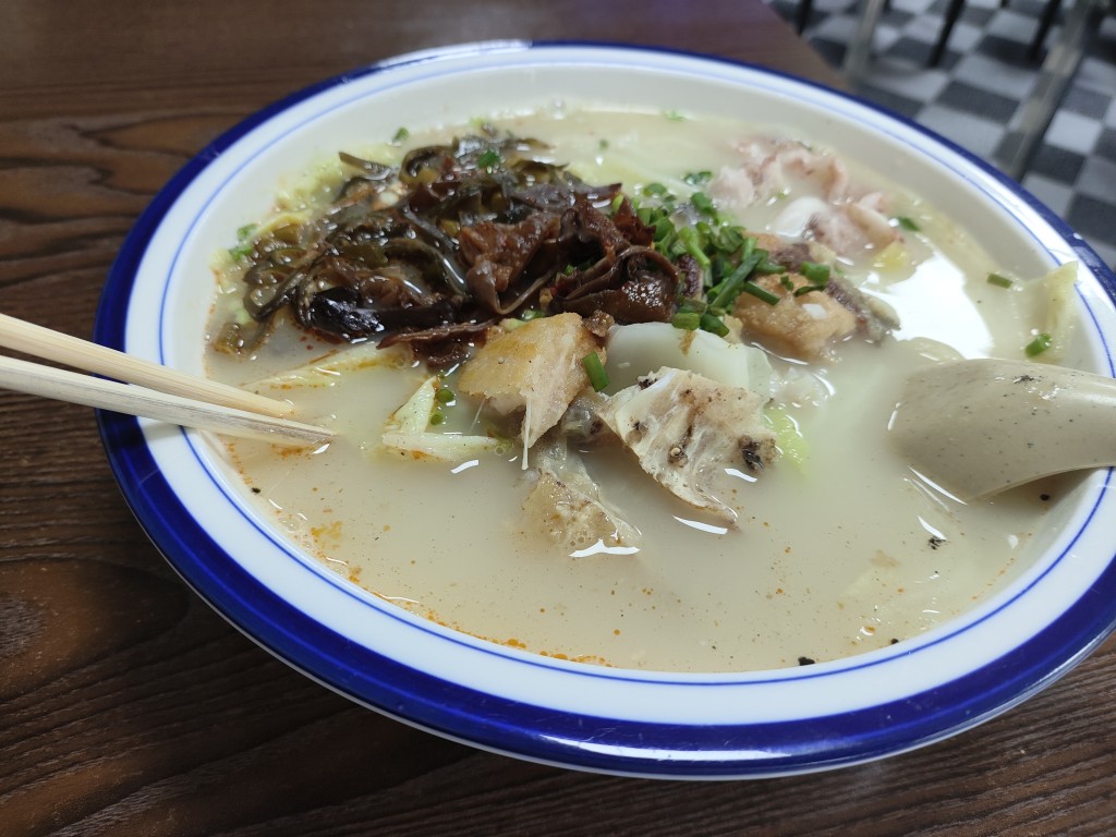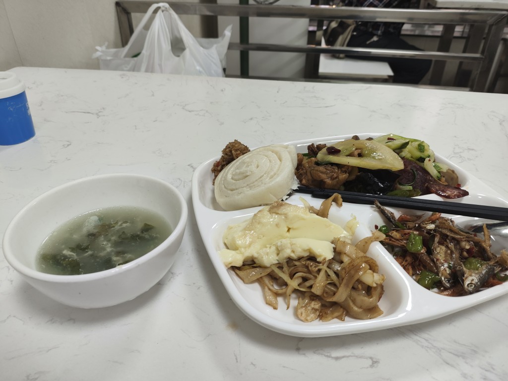 村里的食堂搞得还可以有荤有素,有鱼有肉大概七八个菜,我吃完后他们说有锅巴汤,让我去盛。我以为是什么样的特色汤,结果原来是,把米饭盛完之后锅里剩的锅巴,又倒进去水之后烧开了做的稀饭。