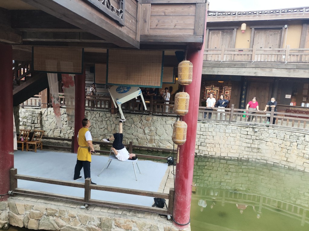 由于下午还要赶到深圳的火车,所以我要尽快解决吃饭问题。景区入口道路的两侧,布满了大大小小的店铺。这些店铺都有卖一种当地特产名叫裹蒸粽,好像一个粽子大的有好几斤。但是因为我对粽子不感兴趣,所以也就没有去品尝。在一个公交站旁边,我发现了一家粉店。可能是新开业做活动的原因,10多块钱就吃得很好,既有鱼丸又有牛杂。味道也是10分的不错。