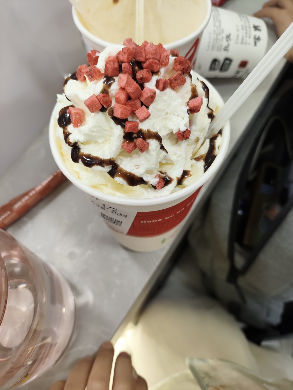 路边的小吃摊上看到了我之前未见过的一种小吃“虾饼”,类似于炸土豆丝饼上放了一整只大虾,买来尝了尝。虾饼的外皮酥脆,咬下去时能听到 “咔嚓” 的脆响。而内部的面饼则松软蓬松,呈现出蜂窝状结构。虾肉的质地弹嫩,与酥脆软绵的面饼搭配,形成了层次丰富的口感,不过这个比较油腻,不能多吃。两侧的门店很多都是卖椰子和果汁的,椰子个头很大,能够两个人喝,我也是第一次体验抱着椰子在街上边逛边喝。