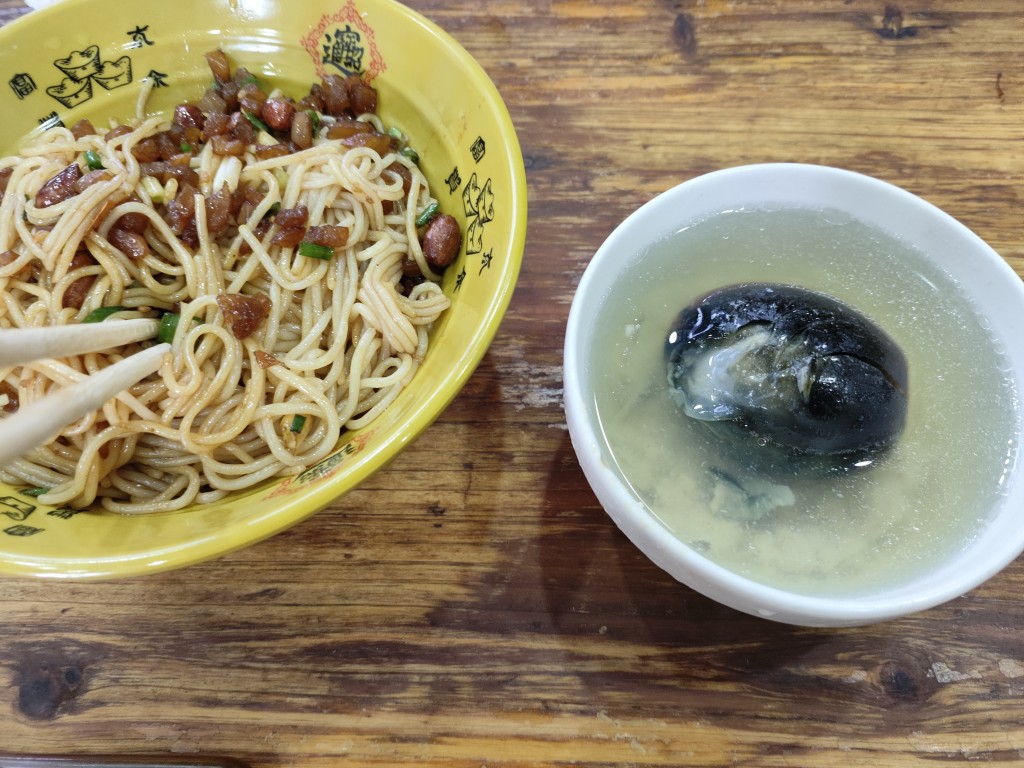 鼻腔里忽然飘来阵阵香气,循味而去,街边的小吃摊早已热气腾腾。吴日彪蒜香炸排骨的摊位前排着长队,金黄酥脆的排骨刚出锅,蒜香混着肉香勾得人直咽口水,我随手买了一袋,孩子们非常喜欢。我在一家辣汤饭店内坐下,点了辣汤饭、面还有一些小吃,其实辣汤饭并不辣,只是放了些胡椒而已。据说这是当年渔民出海前必吃的暖胃美食,对于我们外地的食客来说,这些汤菜并不是一等一的美味,但对于当地人来讲,这不只是美味,还有美好的记忆和一代代的传承。