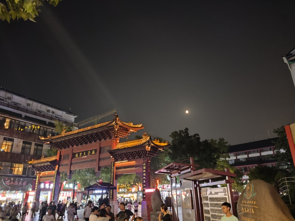 皓月当空,夫子庙的牌坊熠熠生辉,让我突然想到“月上柳梢头,人约黄昏后”,只叹我无人可约,可惜我青春不在,“与买桂花同载酒,终不似少年游”,举头望月总是让人无限感慨,那“月与灯依旧,不见去年人,泪湿春衫袖。“感觉,一瞬间涌上心头,曾经在我生命中或匆匆掠过,或相伴较久而今疏离的往年人,余生恐再难相逢。那过往的美好只能在回忆中渐渐褪去,时过境迁,物是人非,”相见争如不见,有情何似无情“,即使我很想再次重逢,可是重逢还会再有美好吗?”逝者如斯夫,不舍昼夜“时间对于每个人都是公平的,因为每个人都无法追回逝去的时间,在你渴望追回逝去的时间的时候,恰恰又浪费了你现在的时间。