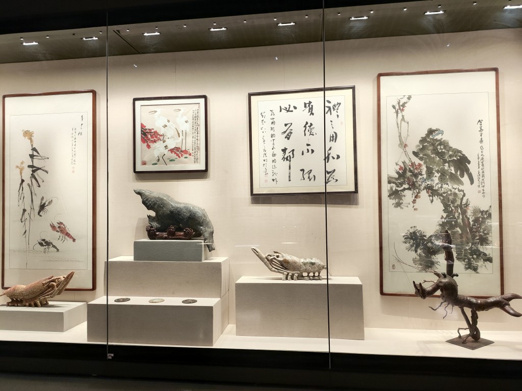 在二楼的龙虾主题展厅里,这里像一部微缩的盱眙龙虾编年史,从远古的龙虾化石标本,到不同生长阶段的虾苗、成虾,连虾壳的纹理都清晰可见,两个孩子凑在玻璃柜前,看了好久才舍得挪开脚步。展厅里的龙虾产业展区,藏着最动人的烟火故事,老式捕虾笼、竹编虾篓、熬制十三香的砂锅静静陈列着,墙上的老照片里,以前挑着虾担的小贩和如今车水马龙的龙虾市场形成鲜明对比,仿佛能听见时光里的吆喝声,最有意思的是互动屏,孩子可以抓龙虾。