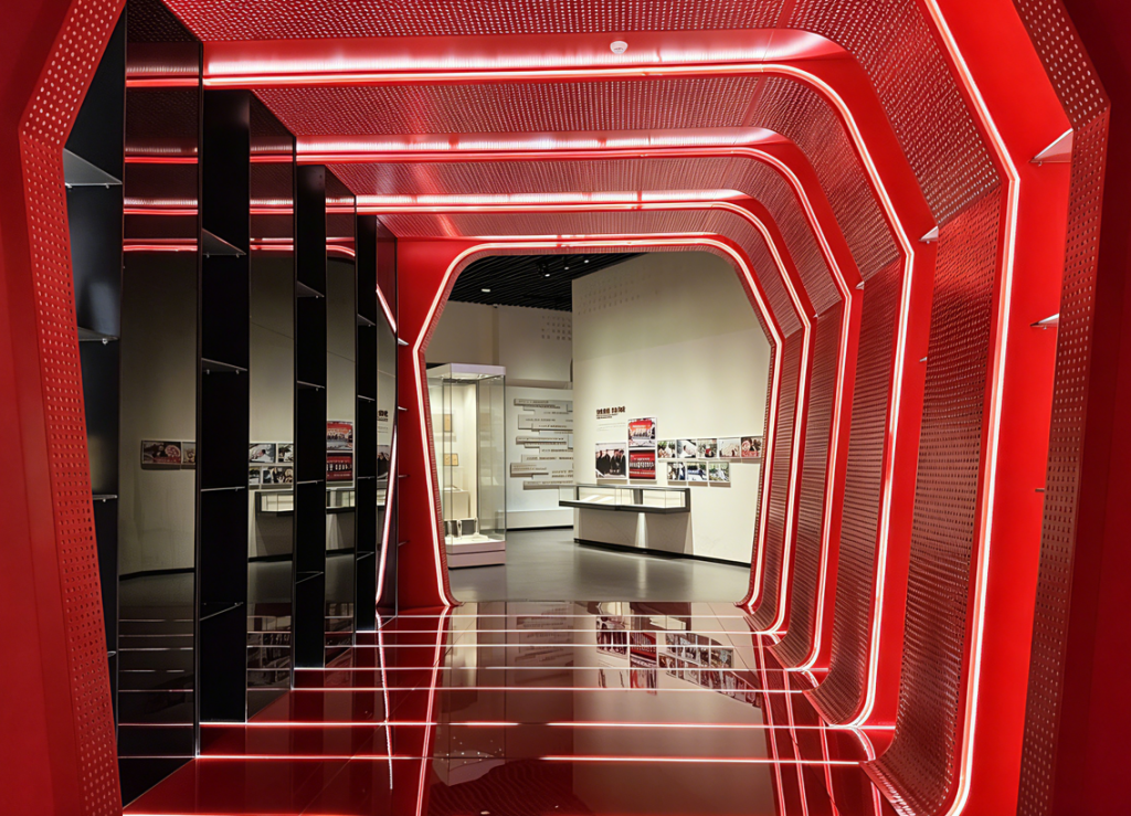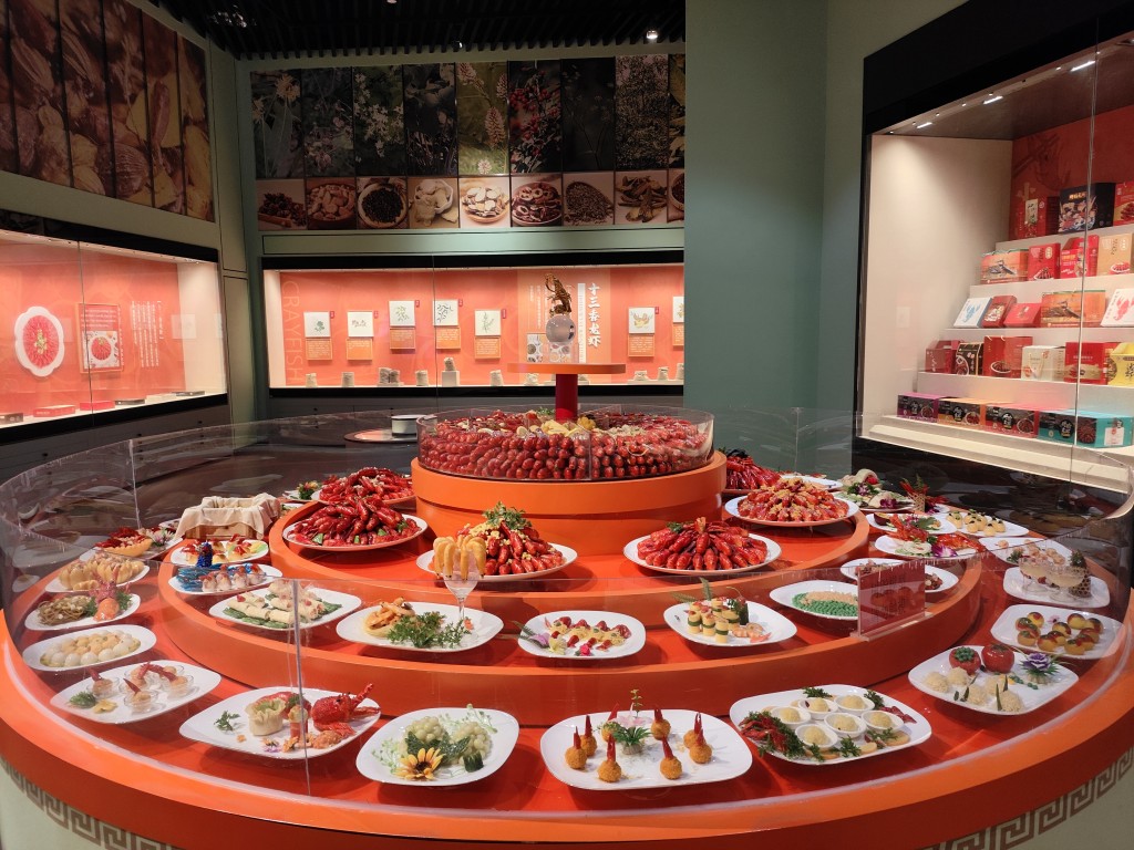 往里走的龙虾美食展区,更是直接勾起了味蕾记忆,一整面仿真龙虾盛宴,十三香、蒜泥、清蒸的小龙虾摆得满满当当,油亮的红壳看着就让人流口水,旁边的展板记录着龙虾节的变迁,从第一届的小集市,到如今万人龙虾宴的盛景,食客们剥虾吮指的笑脸,把 “一城龙虾满城香” 的热闹彻底具象化了,连走廊都设计得充满龙虾元素,红色的灯带像虾壳的纹路。