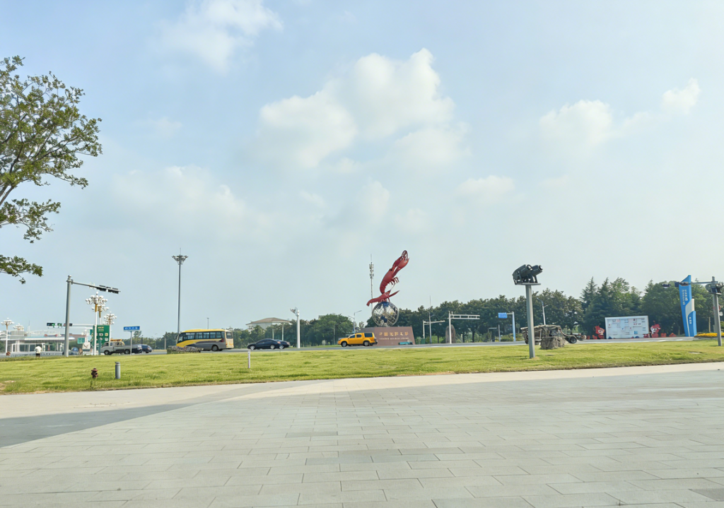 离开博物馆,我们才真正感受到盱眙对小龙虾的热爱,简直无处不在,马路边的广场上,巨大的龙虾雕塑举着钳子,底座上 “中国龙虾之都” 的字样格外醒目;