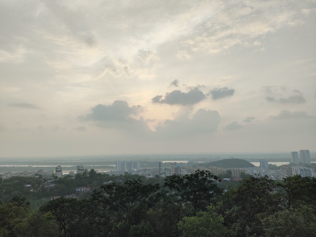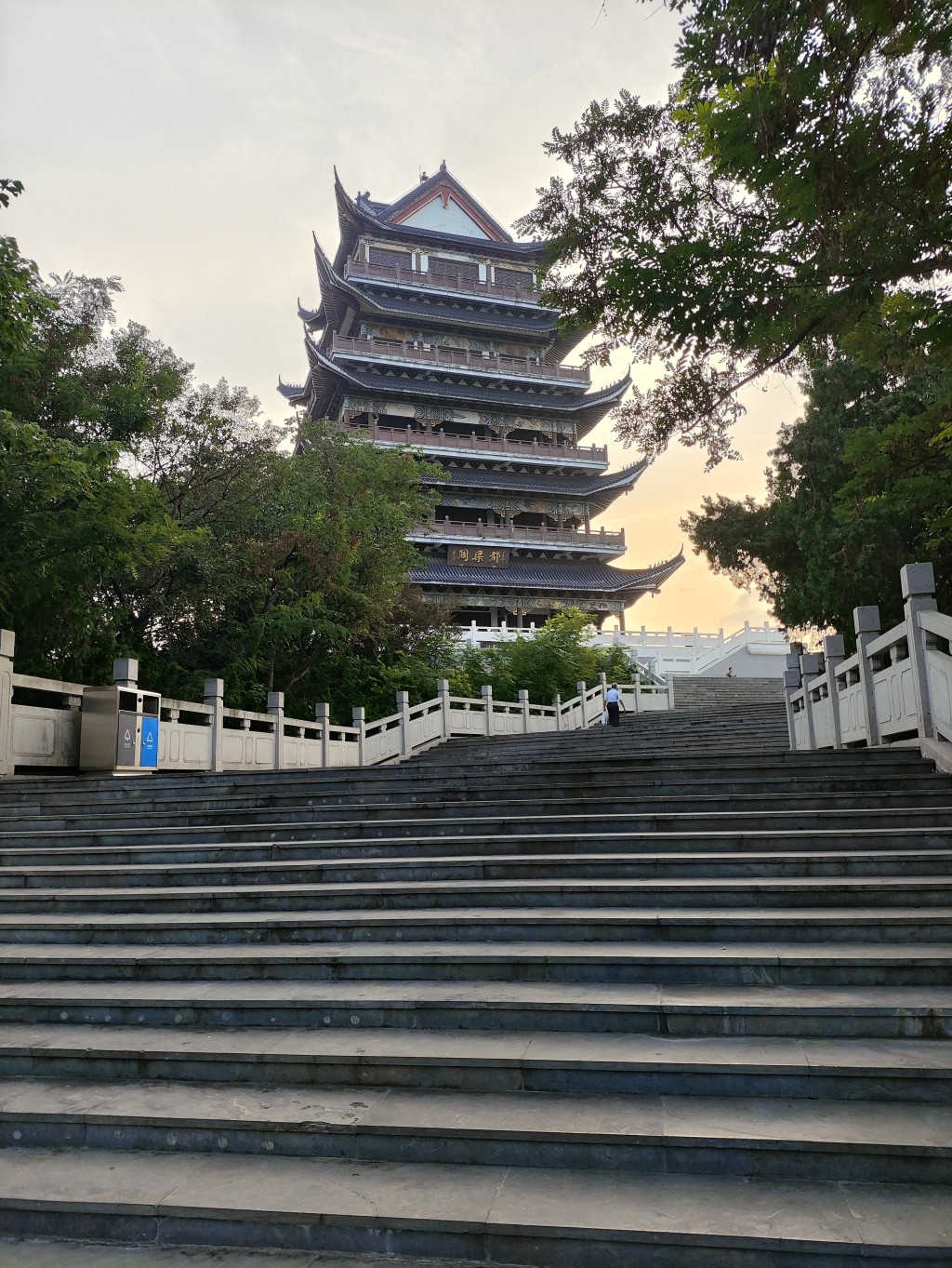 离开矿山公园,我们又往都梁公园去,山顶的都梁阁是盱眙的制高点,车子可以直接开上去,省了不少脚力。登阁远眺,整个盱眙城铺展在眼前,远山和楼房在薄暮里晕成淡淡的轮廓,风从山间吹过来,带着傍晚的凉意,把一天的燥热都吹散了。