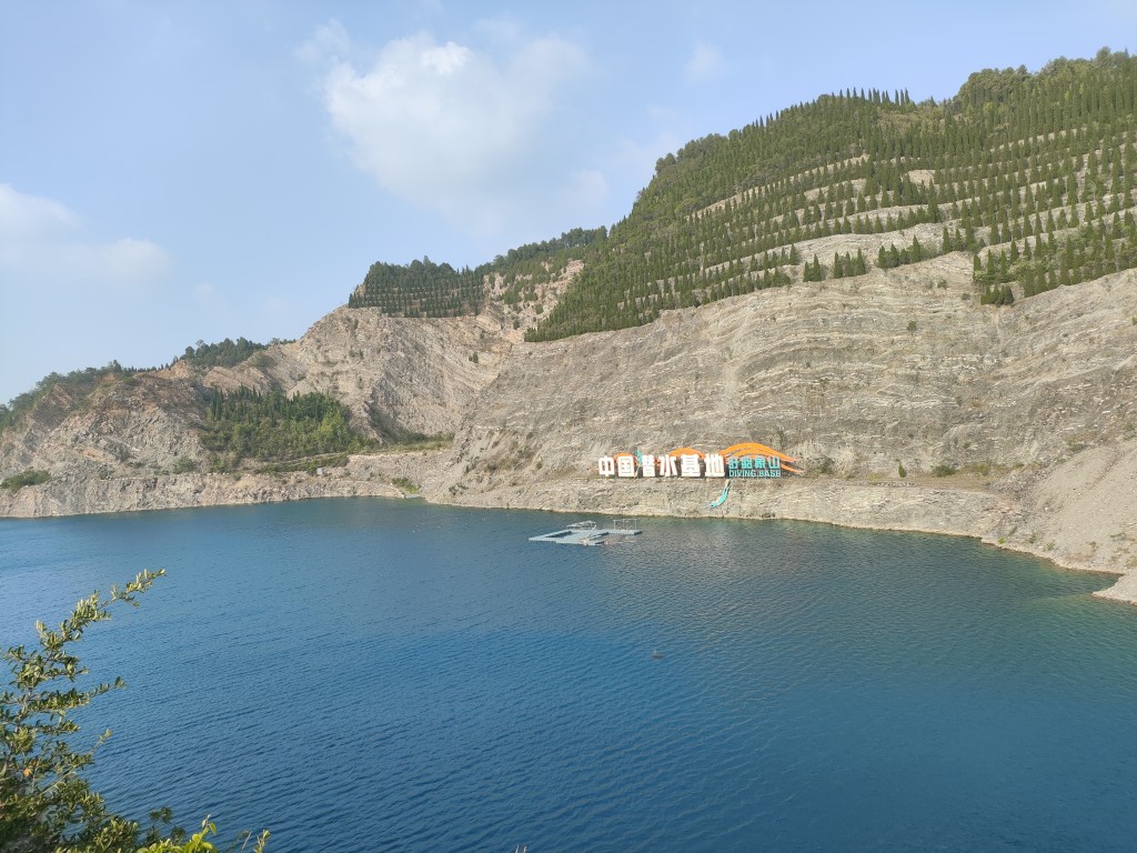 而矿山最让人惊喜的,是那个藏在废弃采石坑中的潜水基地,被人工围出的湖水蓝得发亮,像一块被陡峭山壁捧着的宝石,在阳光下泛着清透的光,很难想象这里曾是轰鸣的采石场,如今却藏着这样一片澄澈的蓝。