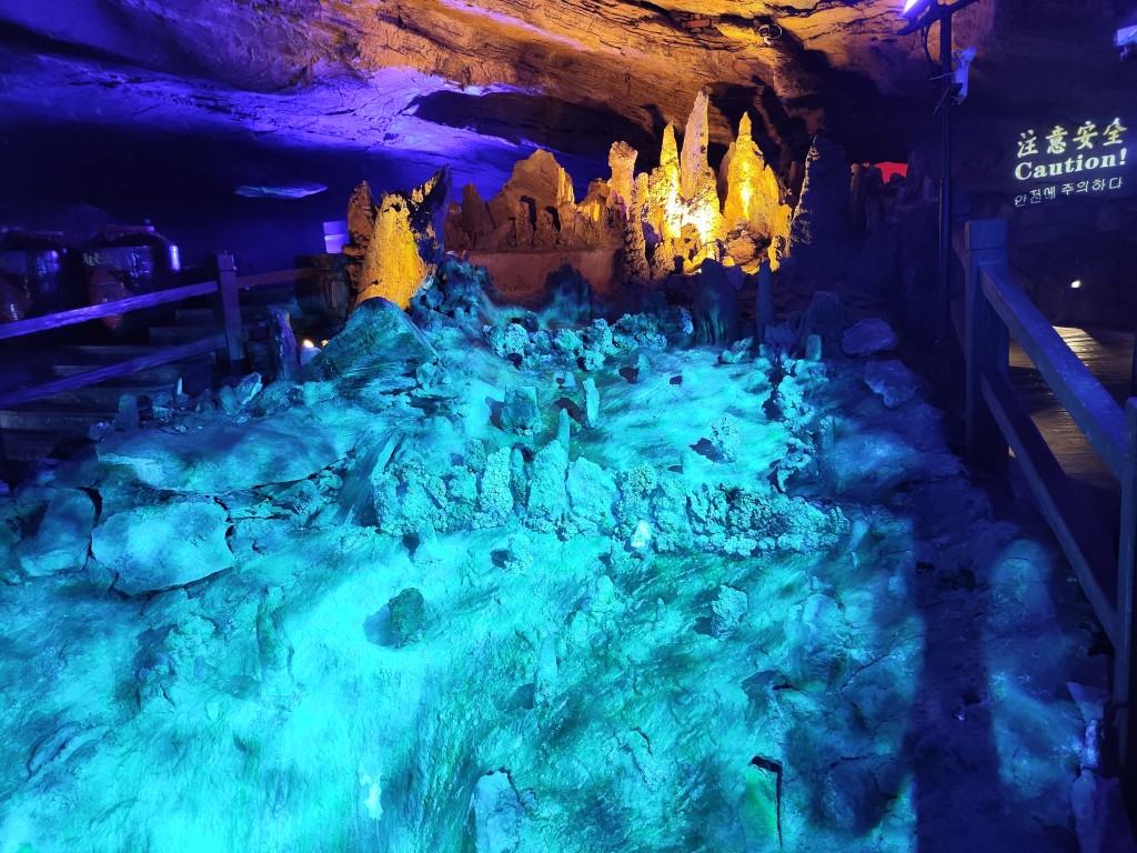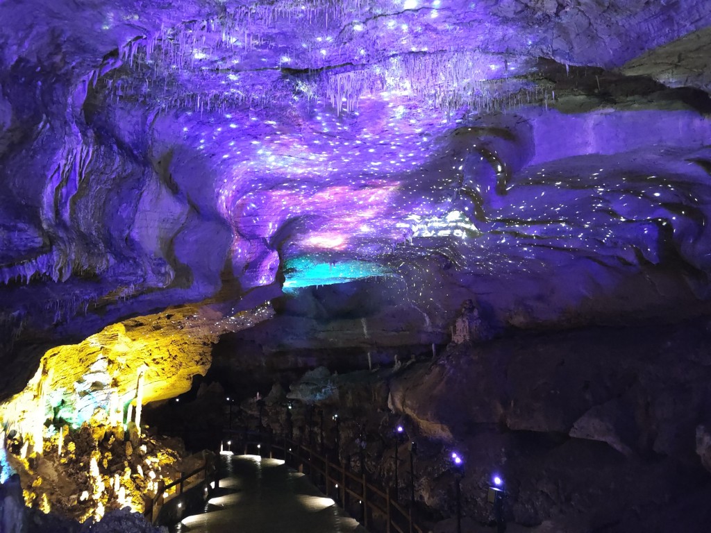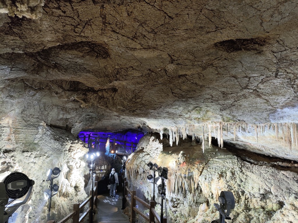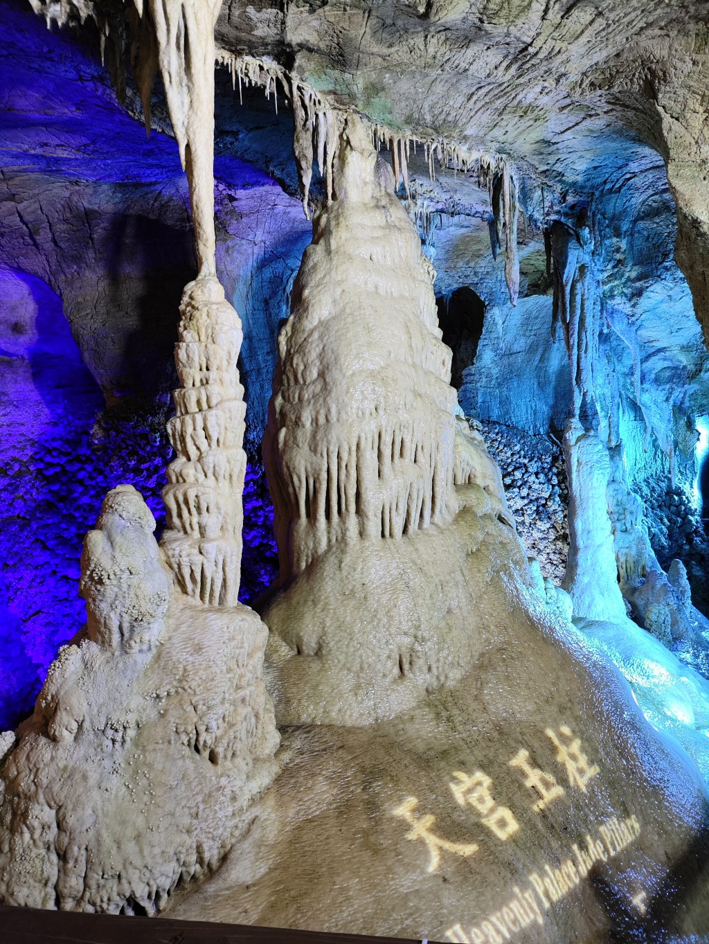 整个溶洞的游程往返约1.2公里,但是父母觉得里面太凉了,走了没多远就出来了。我带着孩子一边欣赏着美景,一边拍照留念,大约用了一个半小时才游览完整个九天洞。