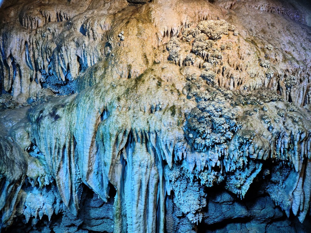 在众多景观中,“九天四绝”尤其令人称奇。大面积的球状和针状结晶体,如同繁星点点;月奶石洁白细腻,如同奶酪一般;石花则像盛开的花朵,娇艳欲滴;石莲则宛如出水芙蓉,清新脱俗。这些稀有景观让我们不禁感叹大自然的鬼斧神工。