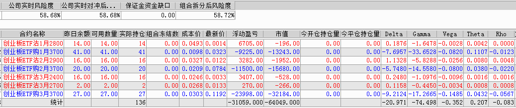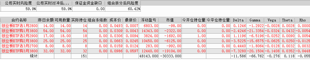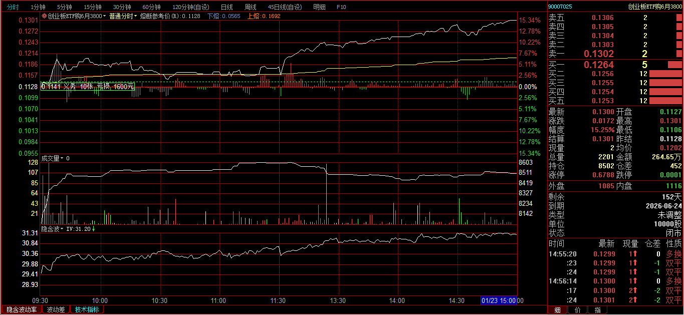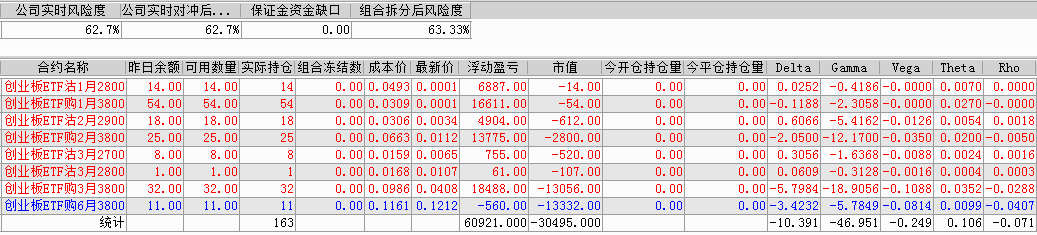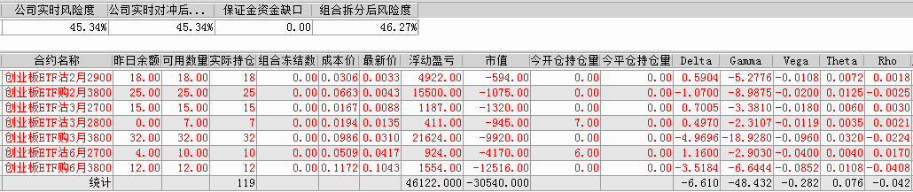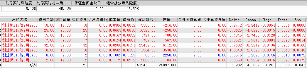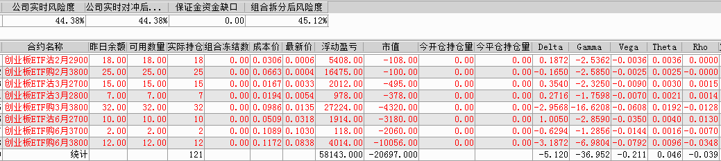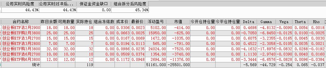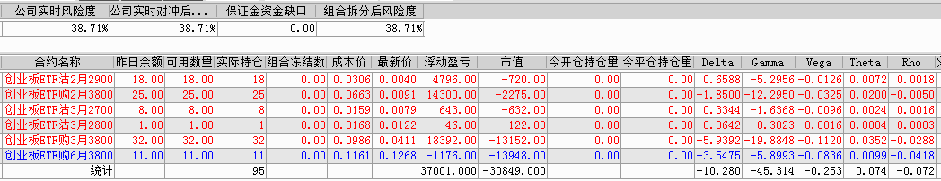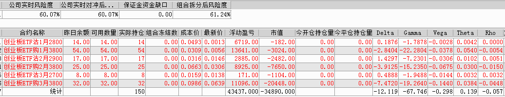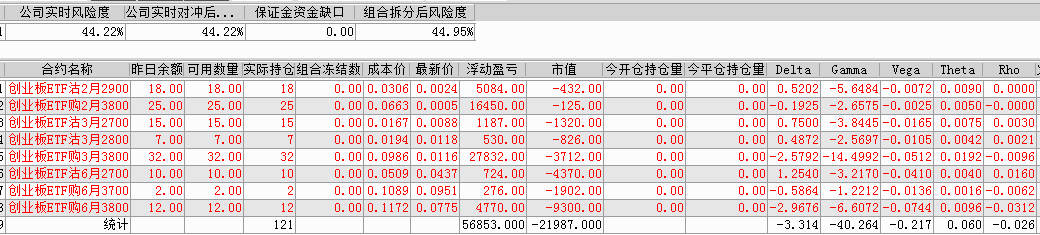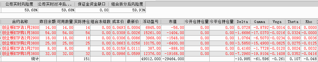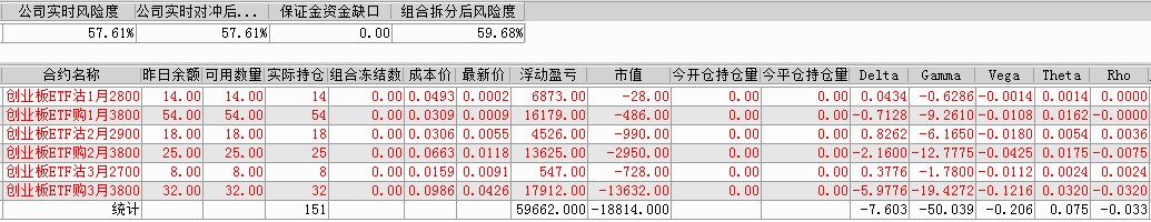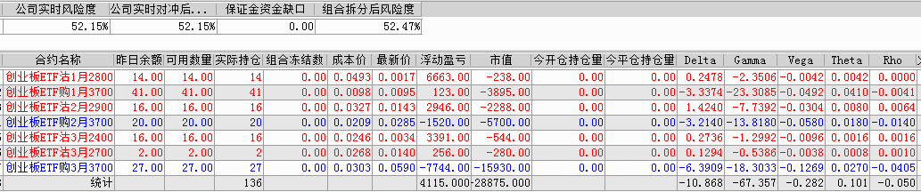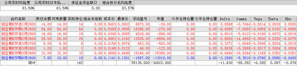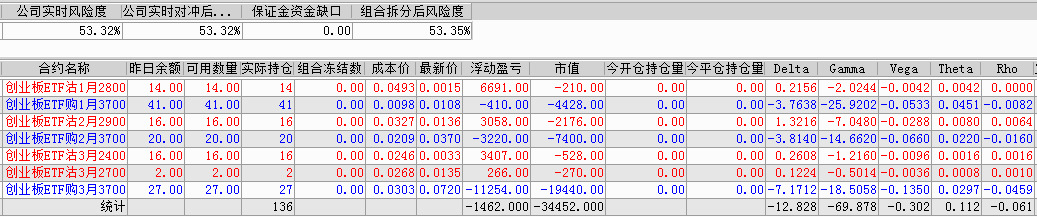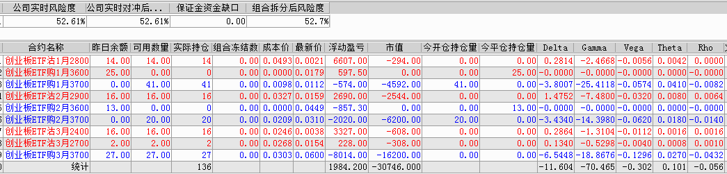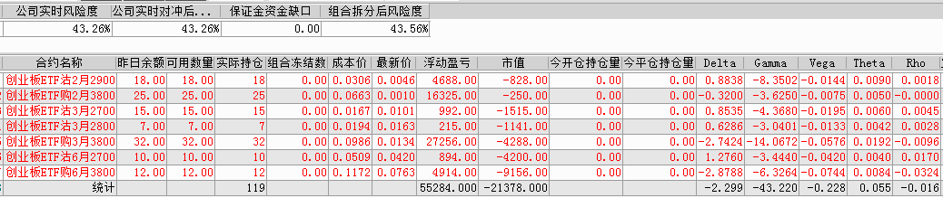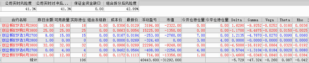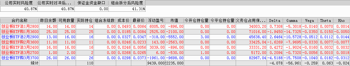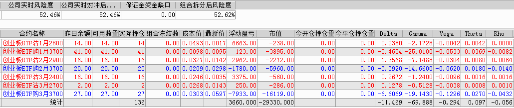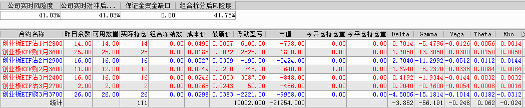 剩余持仓:14张创业板ETF沽1月2800义务仓、25张创业板ETF购1月3600义务仓、16张创业板ETF沽3月2400义务仓、21张创业板ETF购3月3700义务仓。持仓总市值-11294。