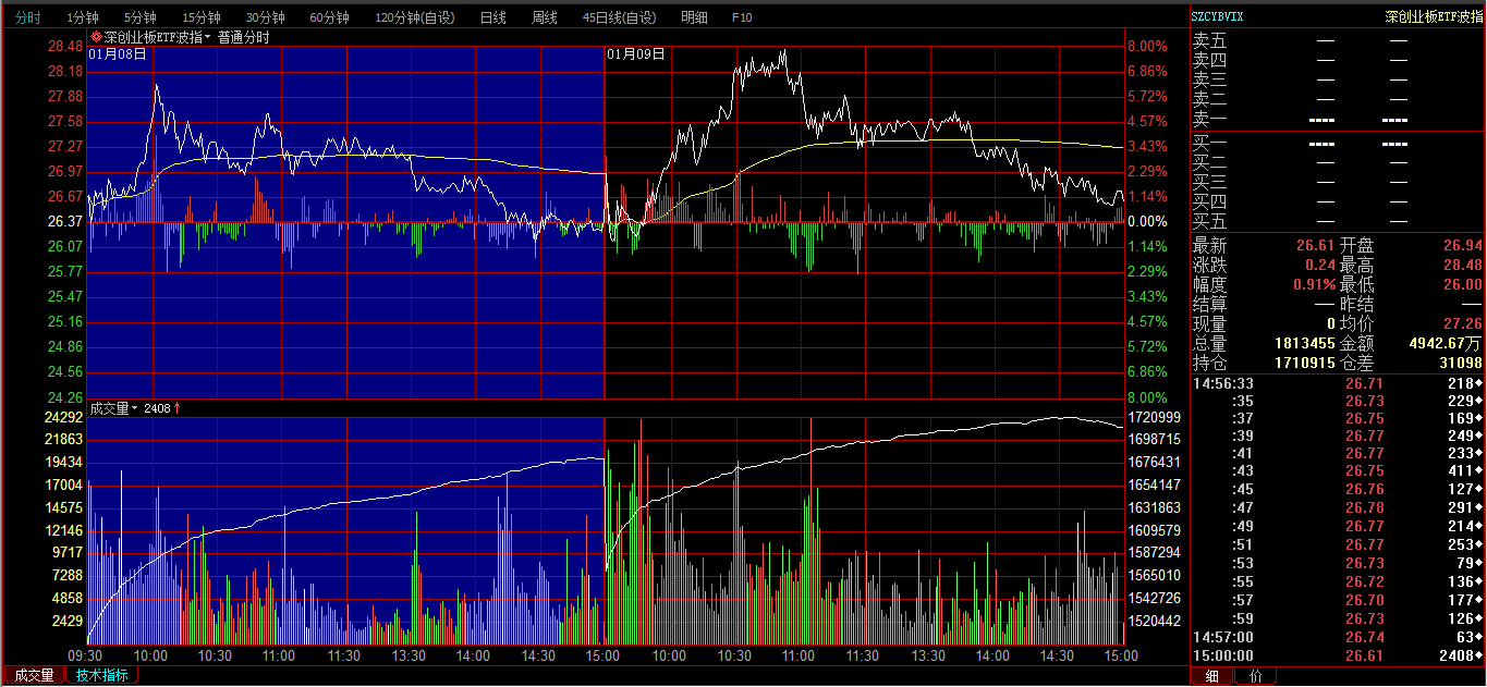 创业板ETF涨0.027,收于3.314;创业板ETF波指涨0.24,收于26.61。