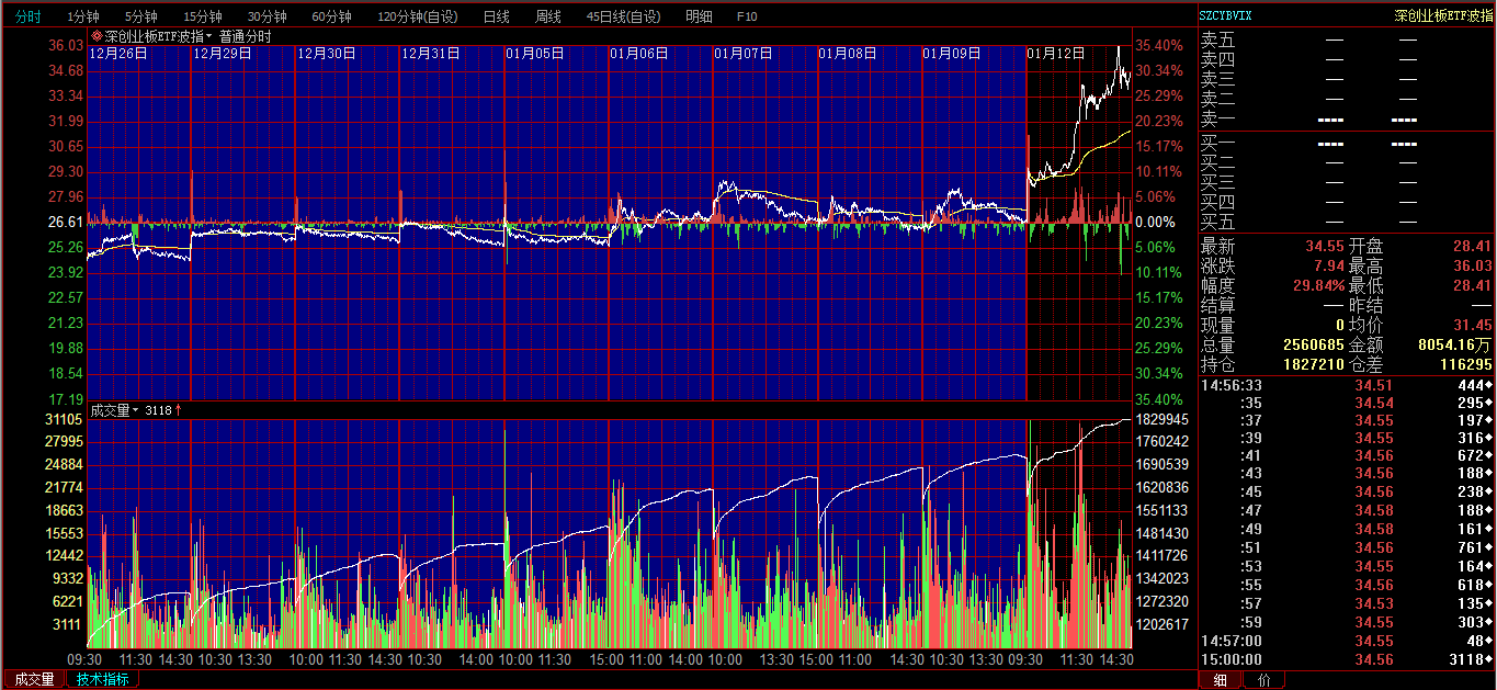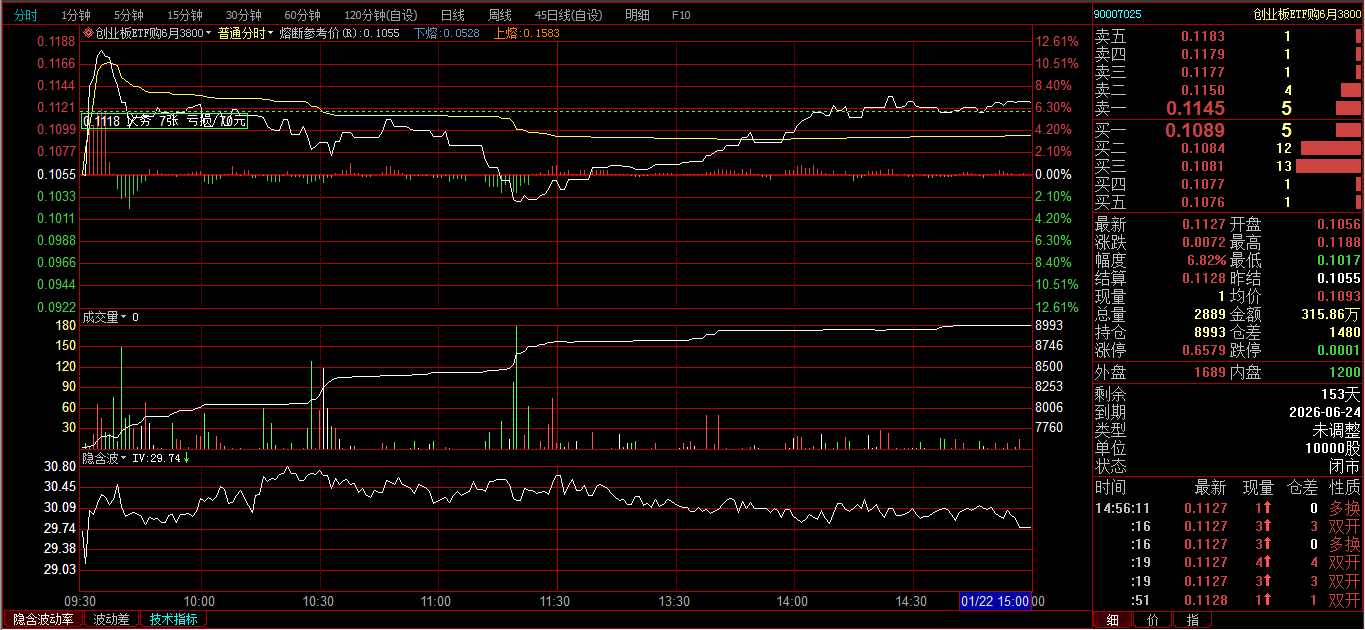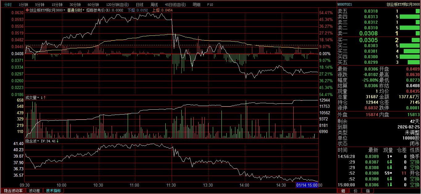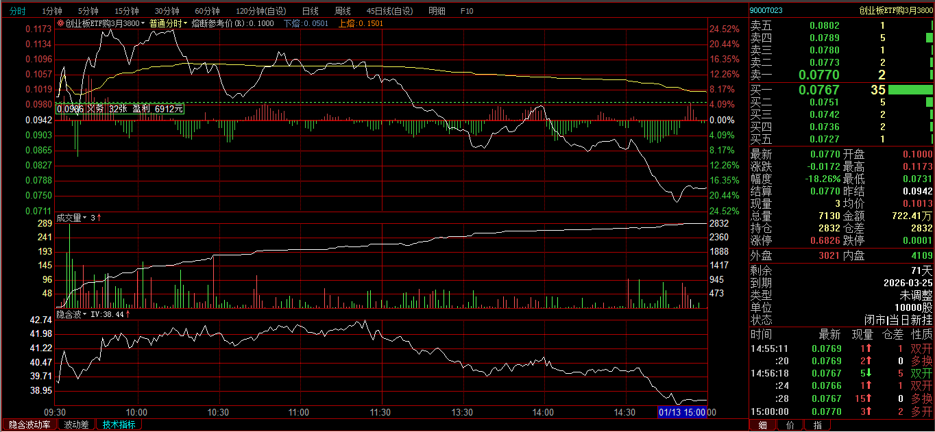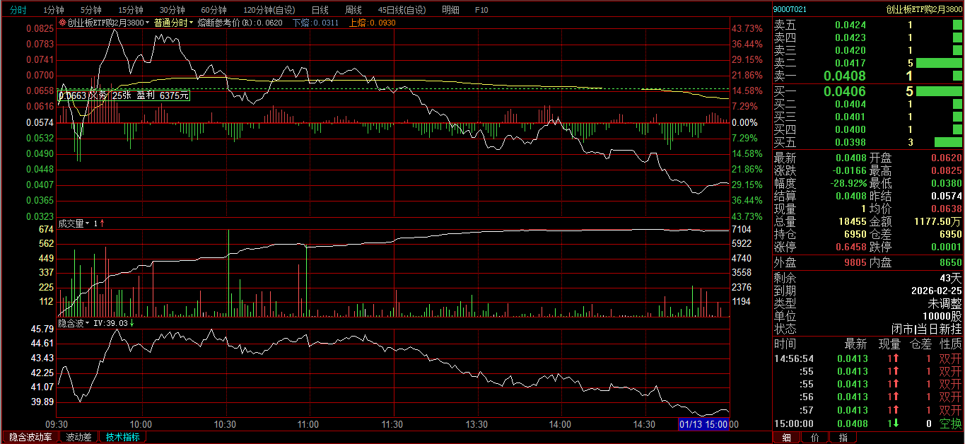 1月合约到期日。14张创业板ETF购1月2800、54张创业板ETF购1月3800到期,自然而然,释放一大笔保证金。