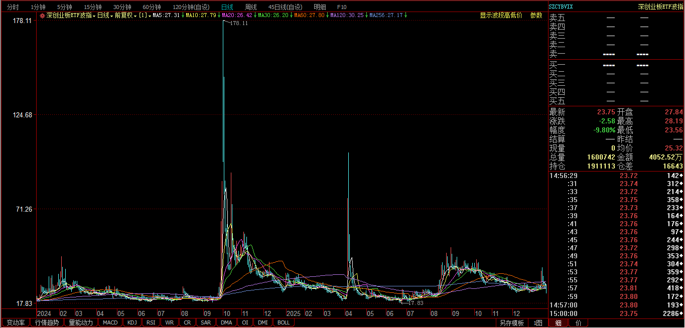 从创业板ETF波指的K线图看,24左右是其平衡中心。