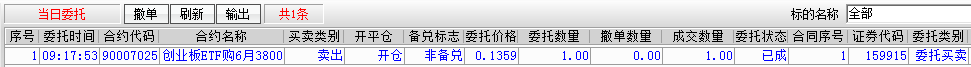 创业板ETF购6月3800卖开1张,成交价0.1359,如愿以偿。